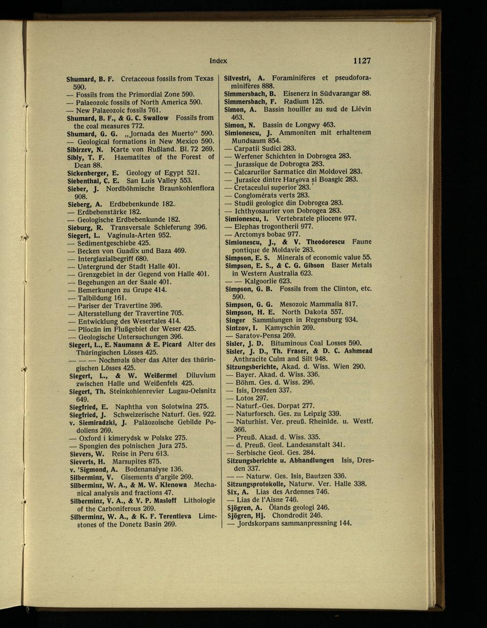 Siegfried, E. Naphtha von Solotwina 275. Siegfried, J. Schweizerische Naturf. Ges. 922. V. Siemiradzki, J. Paläozoische Gebilde Po- doliens 269.