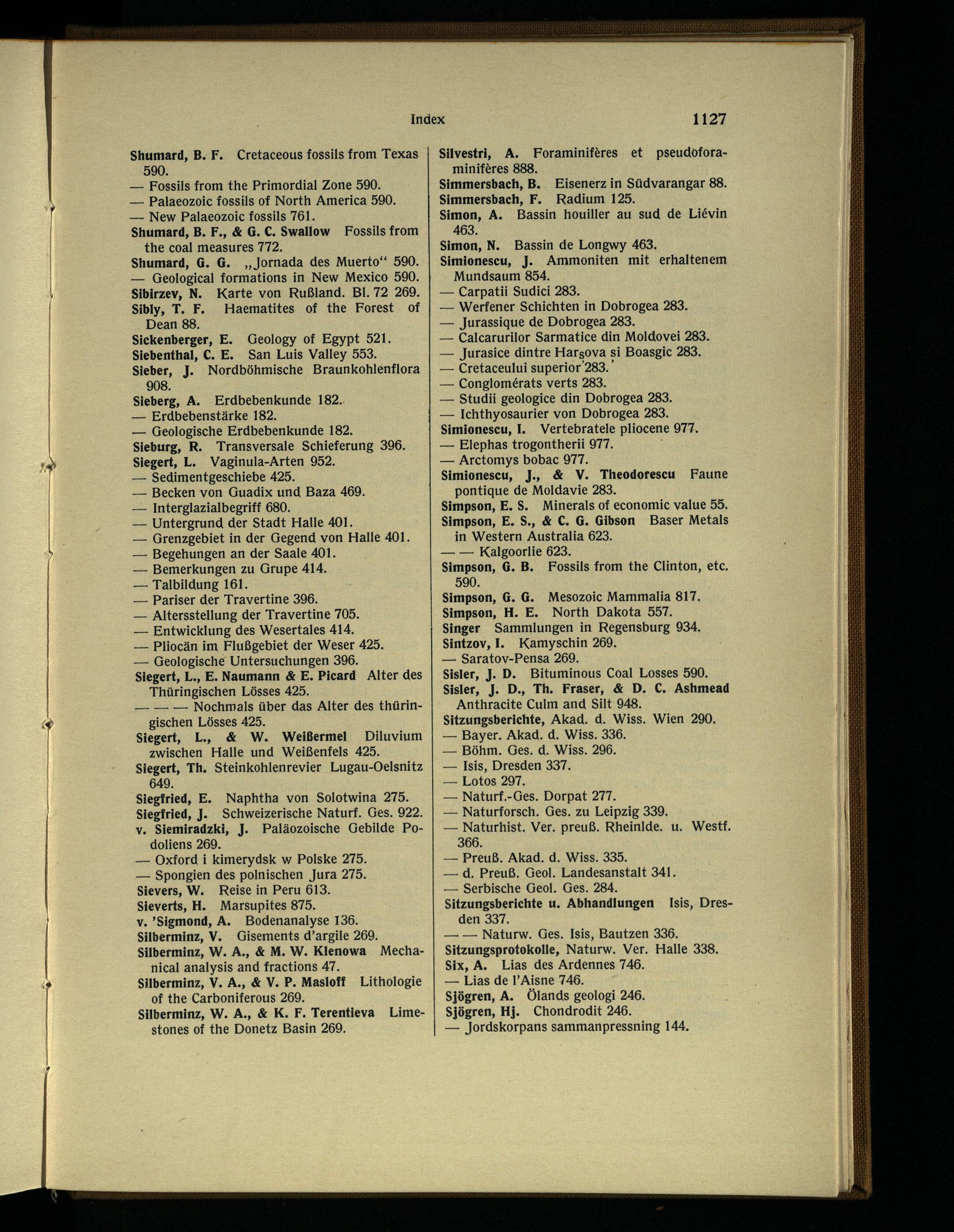 — Geological formations in New Mexico 590. Sibirzev, N. Karte von Rußland . Bl. 72 269. Sibly, T. F. Haematites of the Forest of