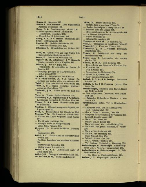 Velasquez de Leon, M. La Ramirita 42. Velde, L. Einschlüsse im Basalte des Bühls 42. Velenovskÿ, J. Flora von Vrsovic 910. Velenovskÿ, J., & L. Viniklàr Böhmische