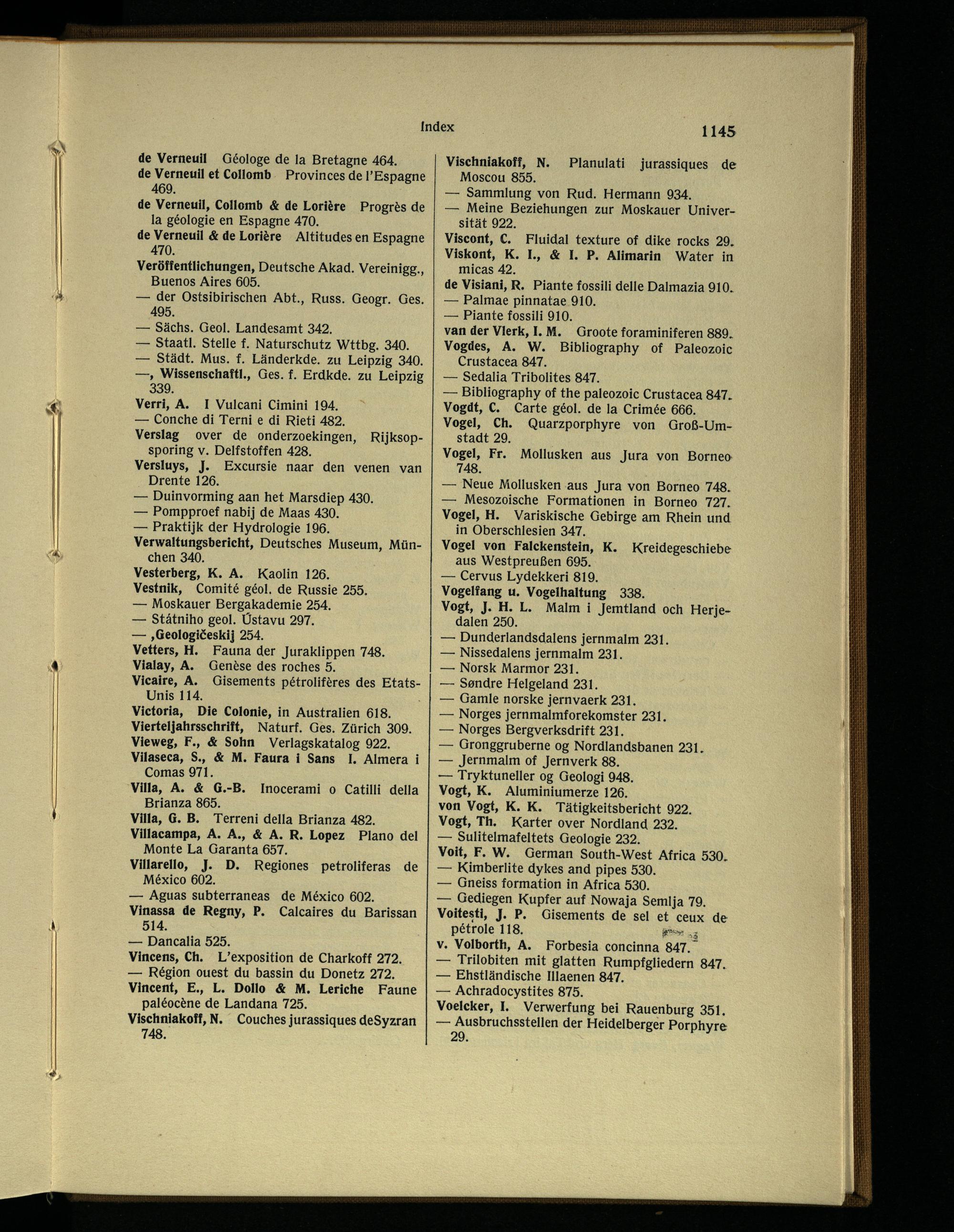 van der Vlerk, I. M. Groote foraminiferen 889. Vogdes, A. W. Bibliography of Paleozoic Crustacea 847.