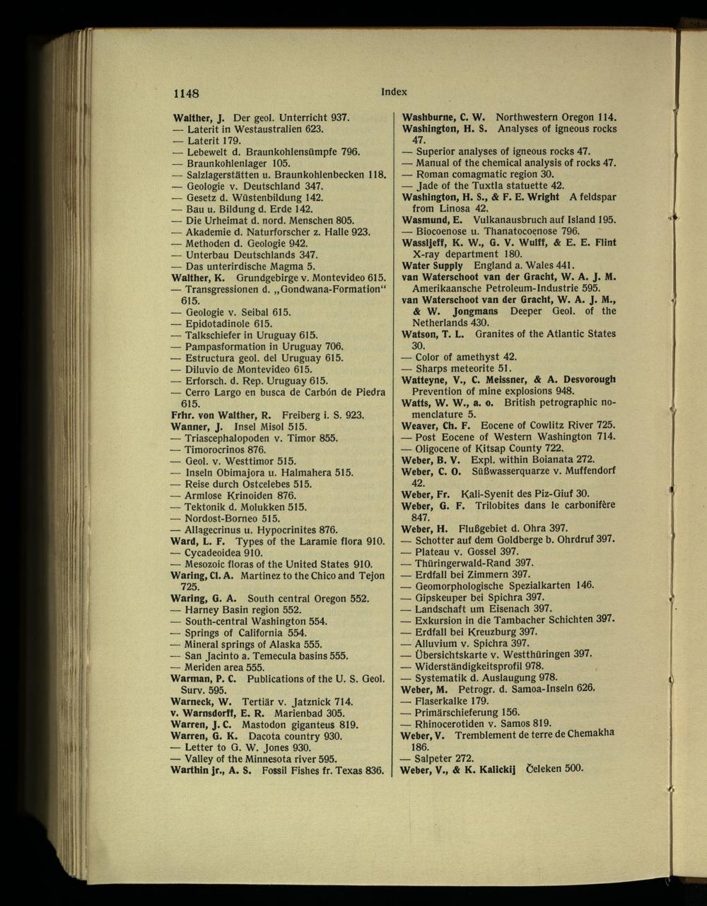 Washburne, C. W. Northwestern Oregon 114. Washington , H. S. Analyses of igneous rocks 47.