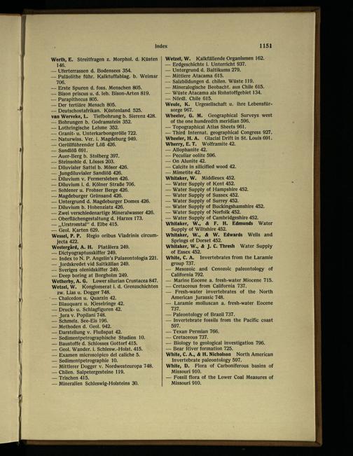 Wetherby, A. 0. Lower Silurian Crustacea 847. Wetzel, W. Konglomerat i. d. Grenzschichten zw. Lias u. Dogger 748.