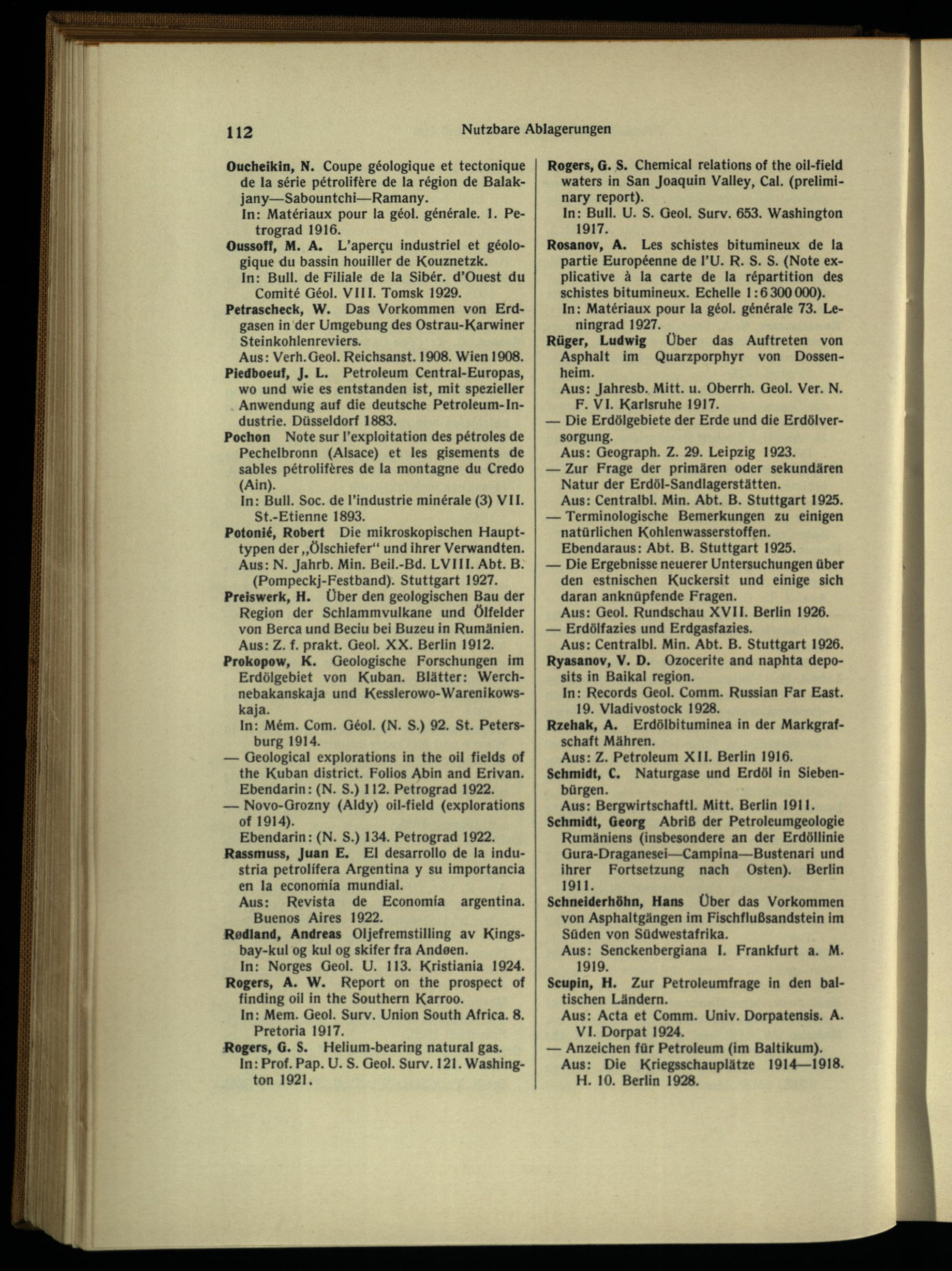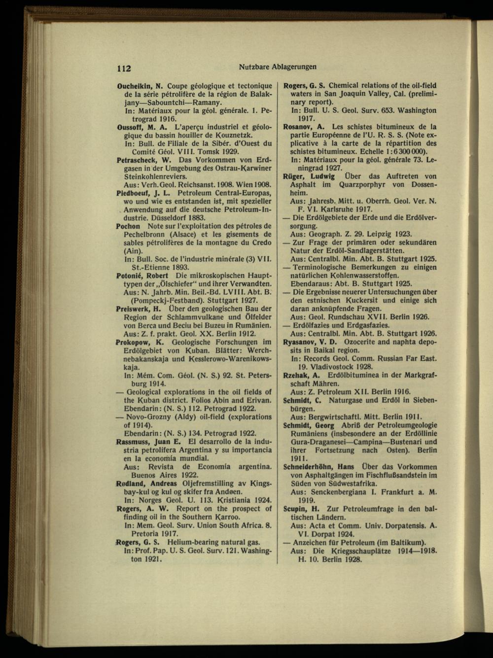 Potonlé, Robert Die mikroskopischen Haupttypen der „Ölschiefer“ und ihrer Verwandten. Aus: N. Jahrb. Min. Beil.-Bd. LVIII. Abt. B. (Pompeckj-Festband). Stuttgart 1927. Preiswerk, H. Über den geologischen Bau der Region der Schlammvulkane und Ölfelder von Berca und Beciu bei Buzeu in Rumänien . Aus: Z. f. prakt. Geol. XX. Berlin 1912. Prokopow, K. Geologische Forschungen im Erdölgebiet von Kuban. Blätter: Werch- nebakanskaja und Kesslerowo-Warenikows- kaja.