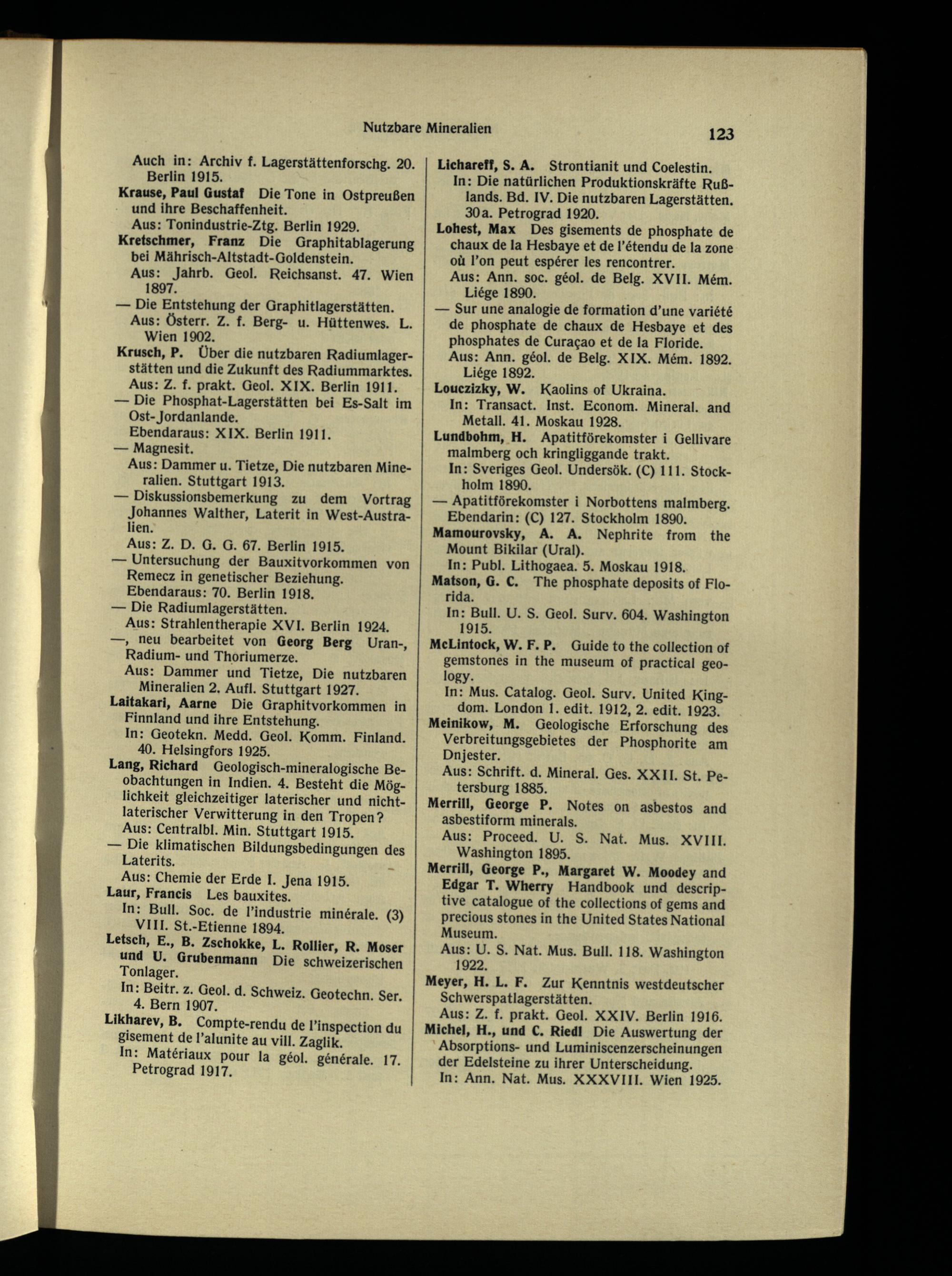 In: Mus. Catalog. Geol. Surv. United King dom . London 1. edit. 1912, 2. edit. 1923. Meinikow, M. Geologische Erforschung des Verbreitungsgebietes der Phosphorite am Dnjester.