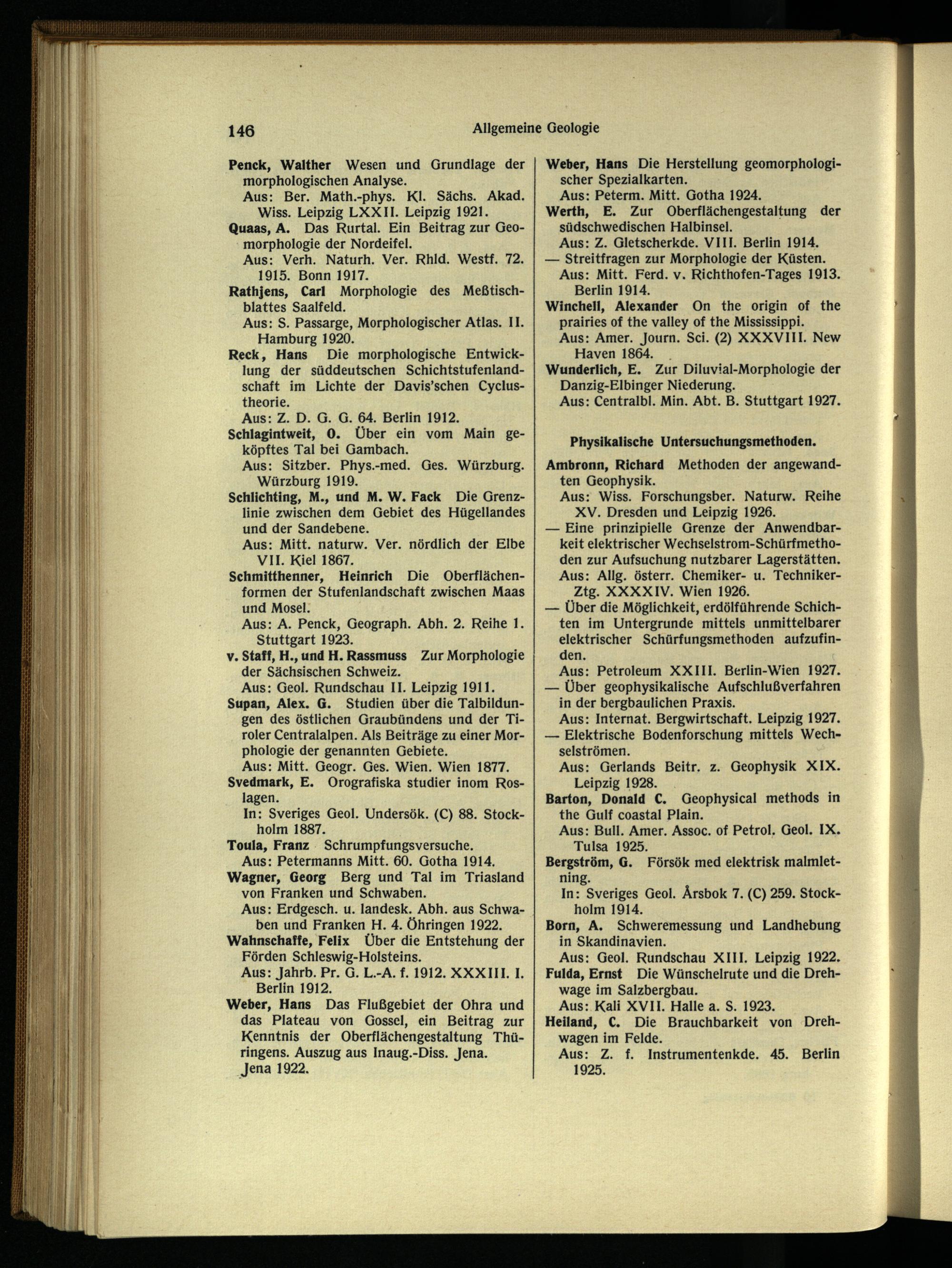 Reck, Hans Die morphologische Entwicklung der süddeutschen Schichtstufenlandschaft im Lichte der Davis’schen Cyclus- theorie.