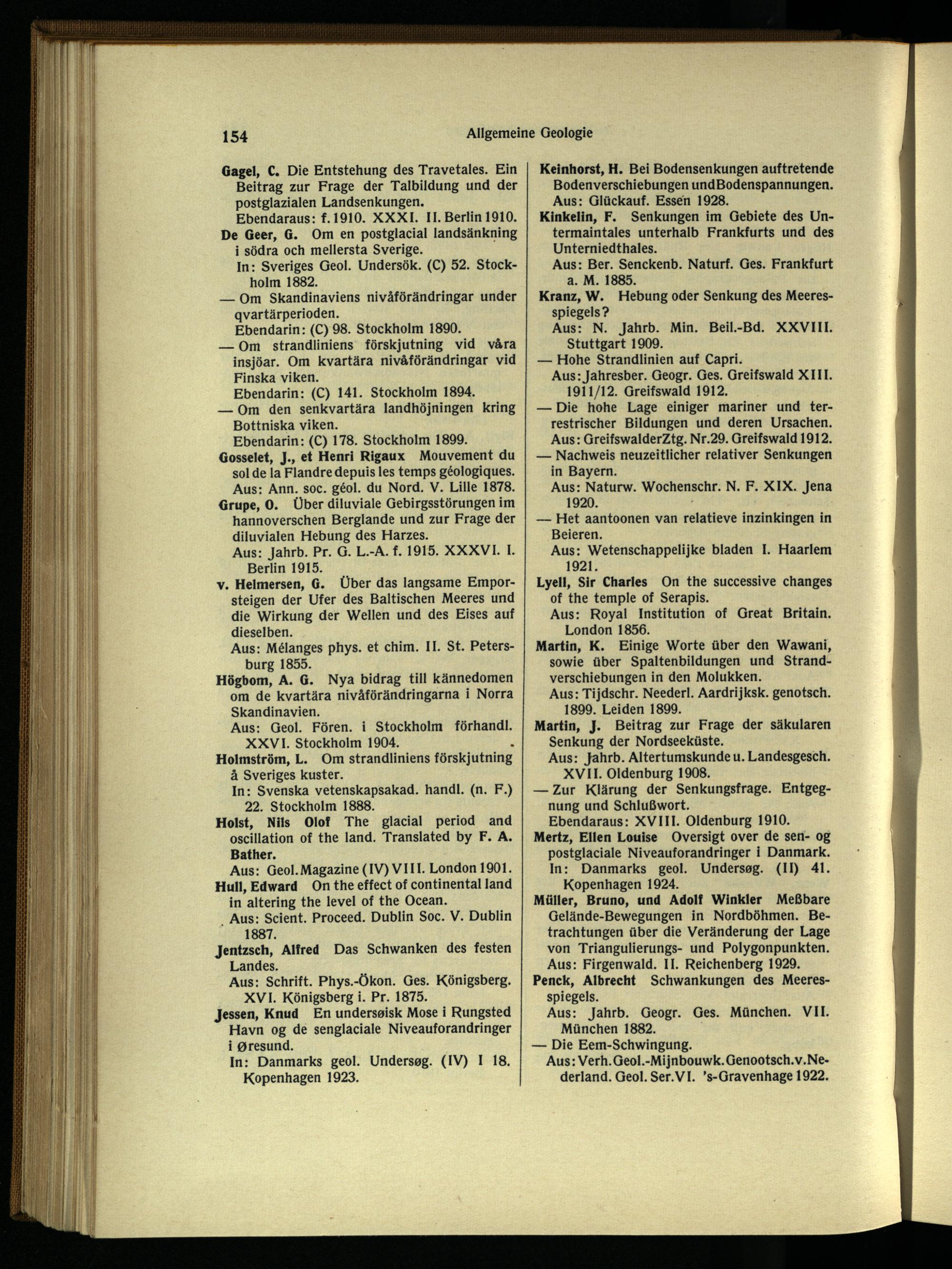 Ebendaraus: f.1910. XXXI. II. Berlin 1910. De Geer , G. Om en postglacial landsänkning i södra och mellersta Sverige.