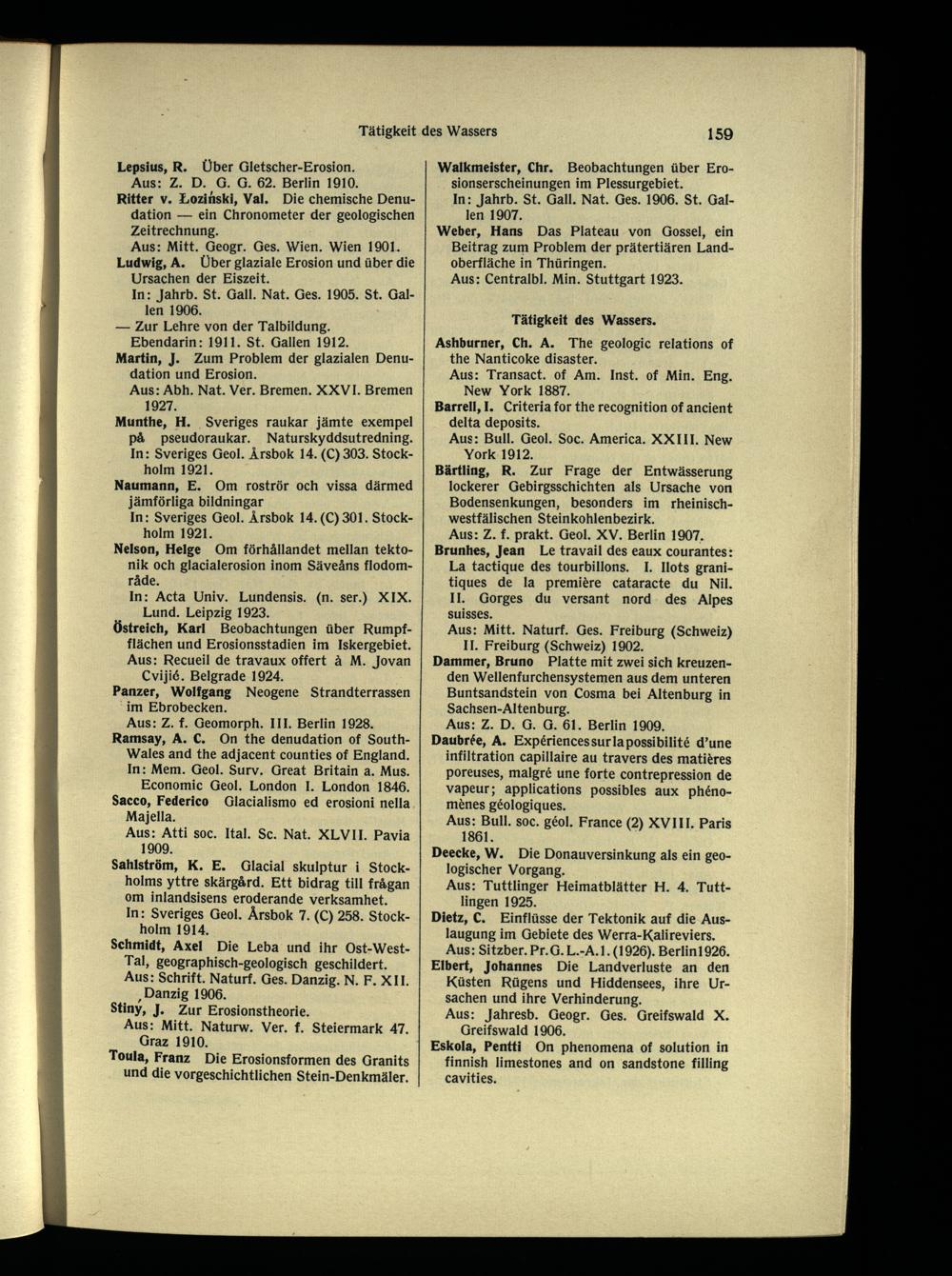 Aus: Z. f. Geomorph. III. Berlin 1928. Ramsay, A. C. On the denudation of South- Wales and the adjacent counties of England. In: Mem. Geol. Surv. Great Britain a. Mus. Economic Geol. London 1. London 1846. Sacco, Federico Glacialismo ed erosioni nella Majella.