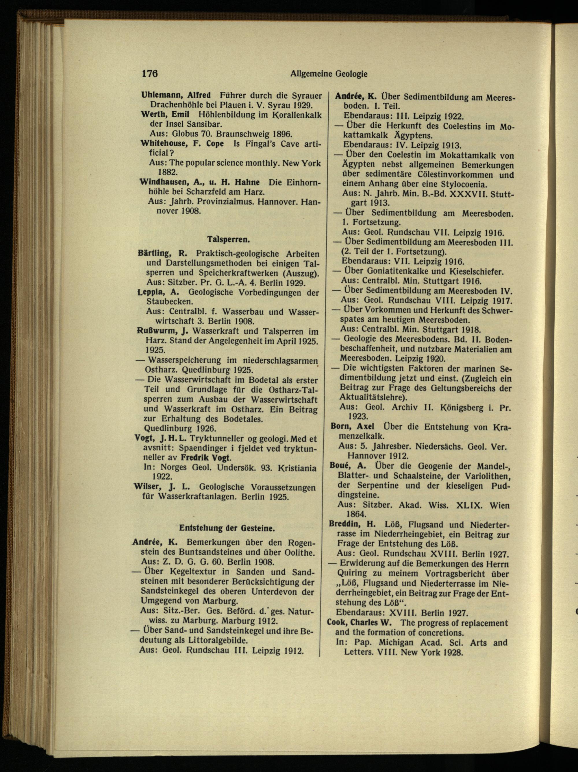 Uhlentann, Alfred Führer durch die Syrauer Drachenhöhle bei Plauen i. V. Syrau 1929. Werth, Emil Höhlenbildung im Korallenkalk der Insel Sansibar.