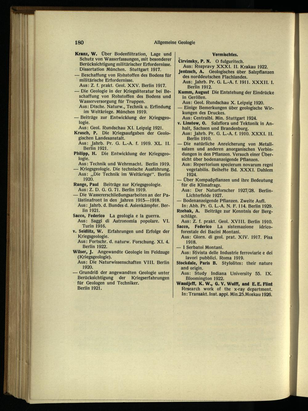 — Die Geologie in der Kriegsliteratur bei Beschaffung von Rohstoffen des Bodens und Wasserversorgung für Truppen.