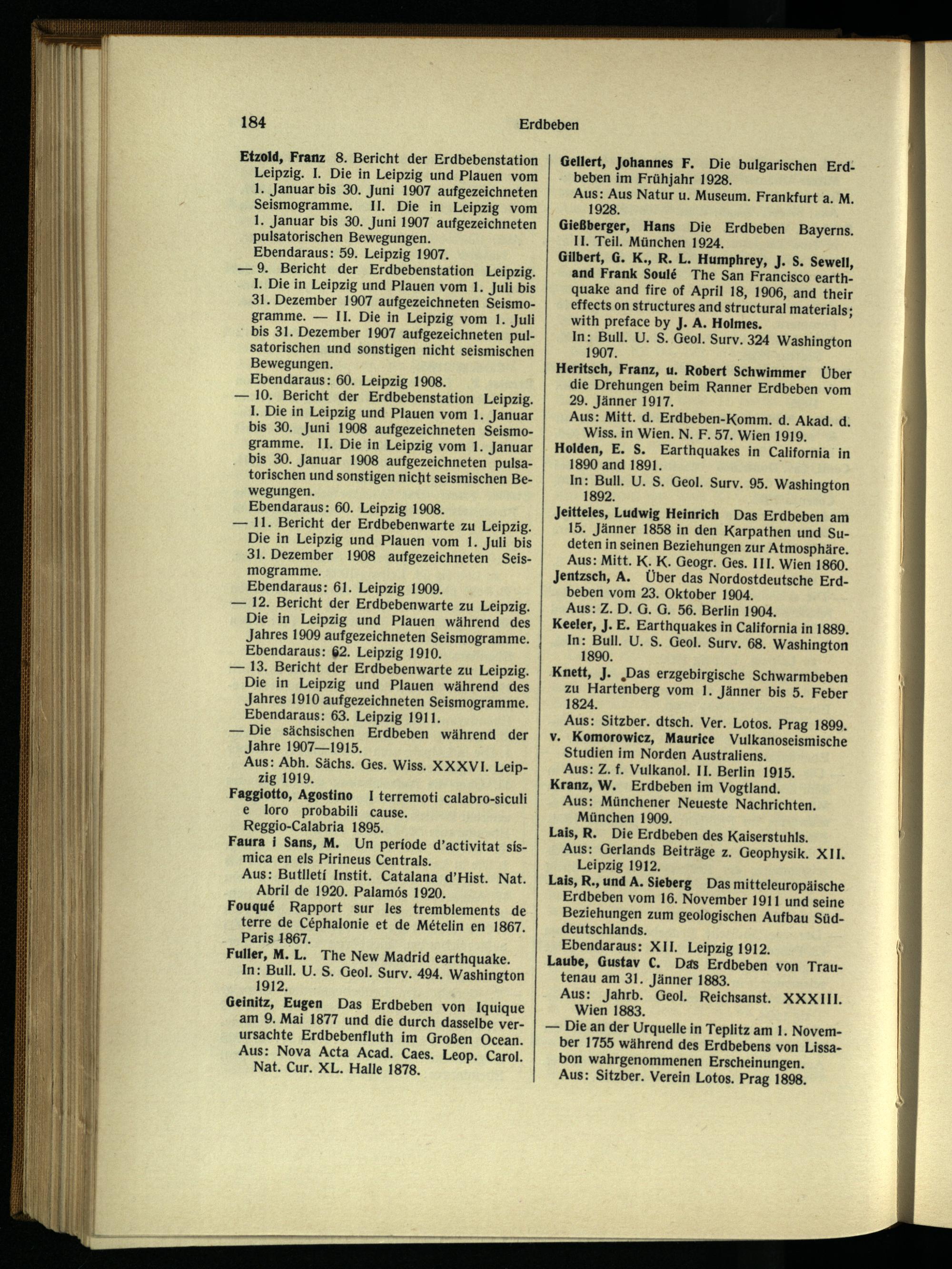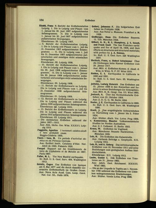 — 12. Bericht der Erdbebenwarte zu Leipzig . Die in Leipzig und Plauen während des Jahres 1909 aufgezeichneten Seismogramme. Ebendaraus: 62. Leipzig 1910.