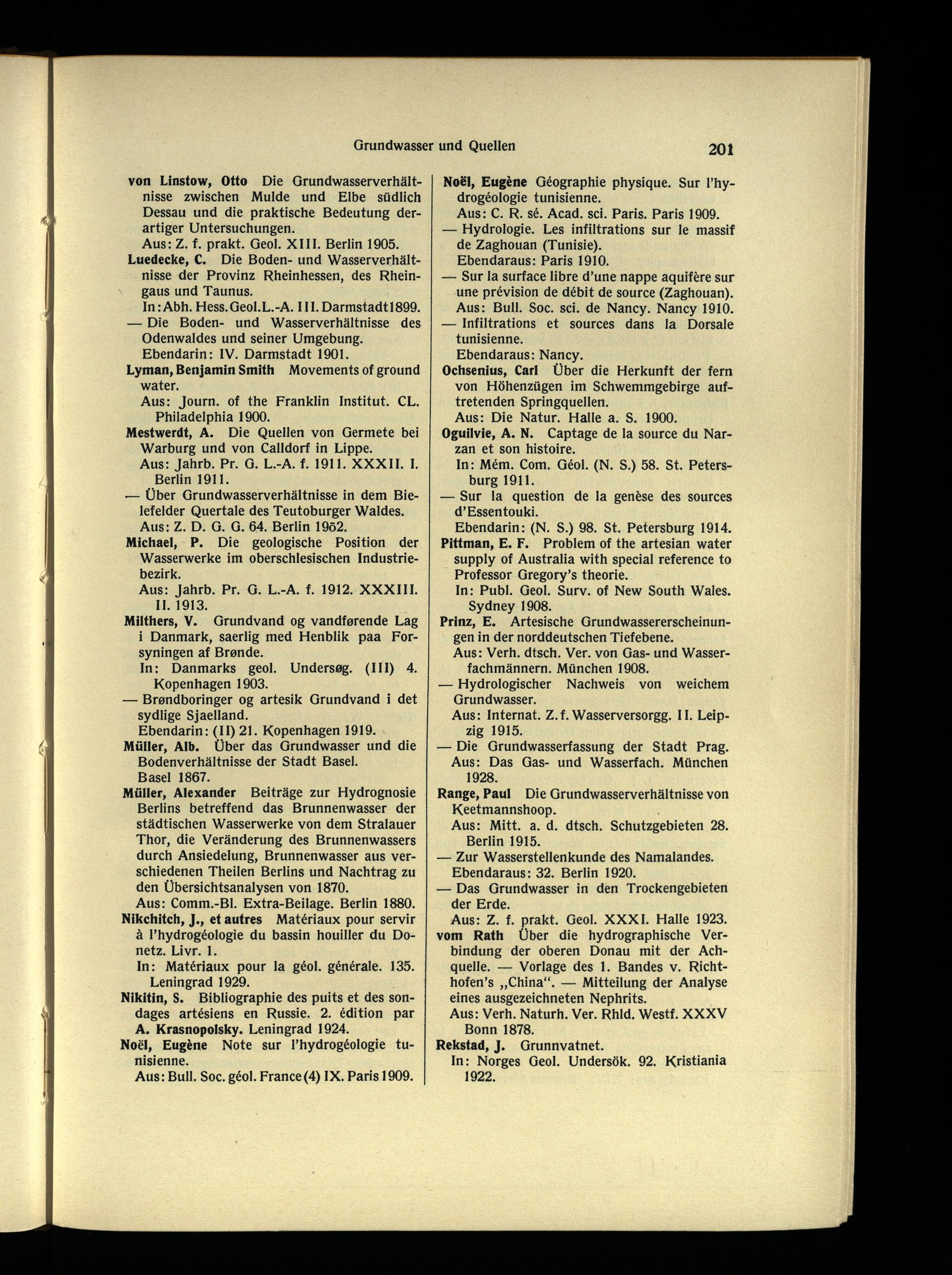 Nikitin, S. Bibliographie des puits et des sondages artésiens en Russie. 2. édition par A. Krasnopolsky. Leningrad 1924.
