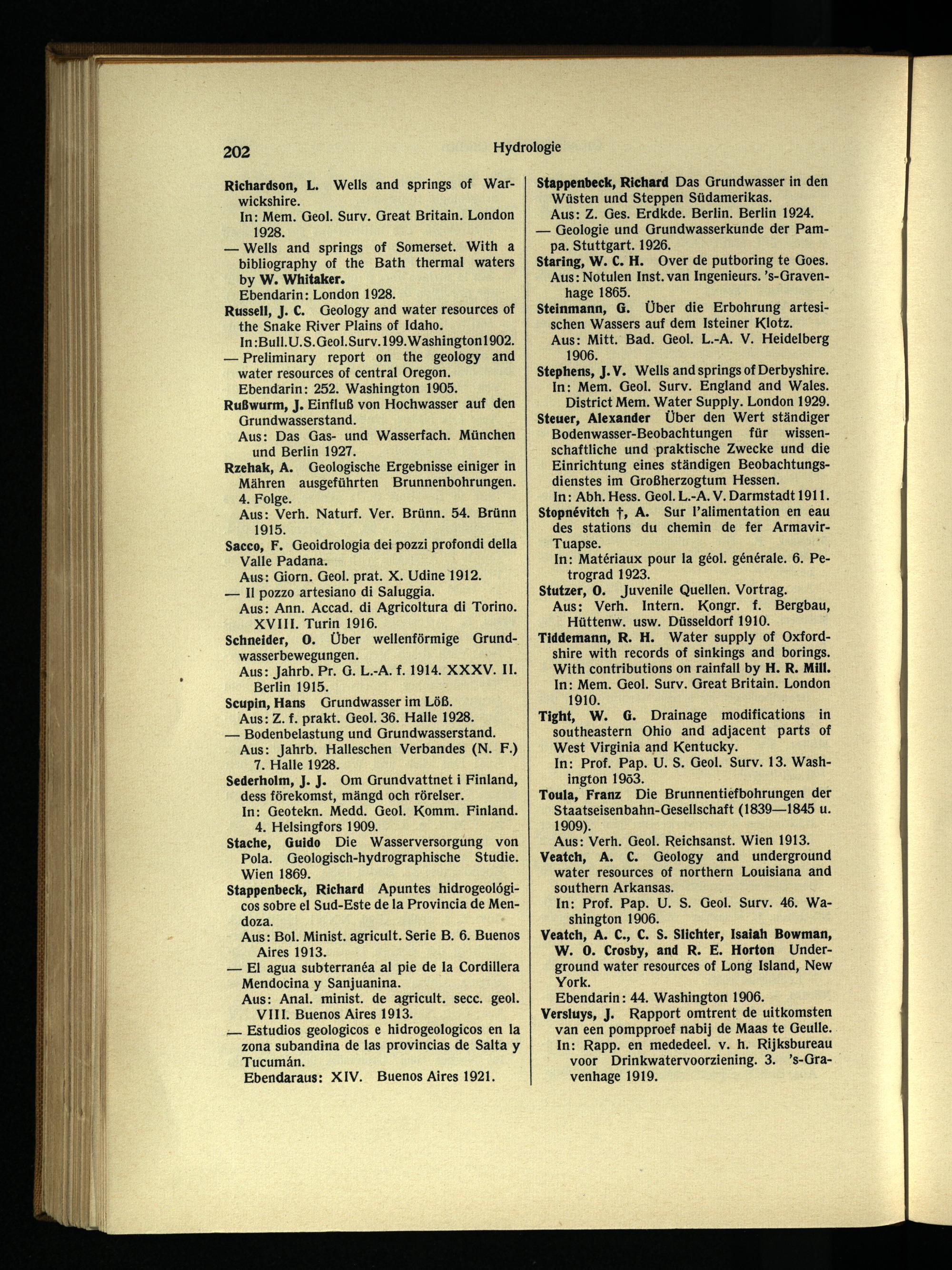 Stephens, J. V. Wells and springs of Derbyshire. In: Mem. Geol. Surv. England and Wales . District Mem. Water Supply. London 1929. Steuer, Alexander Über den Wert ständiger Bodenwasser-Beobachtungen für wissenschaftliche und praktische Zwecke und die Einrichtung eines ständigen Beobachtungsdienstes im Großherzogtum Hessen.