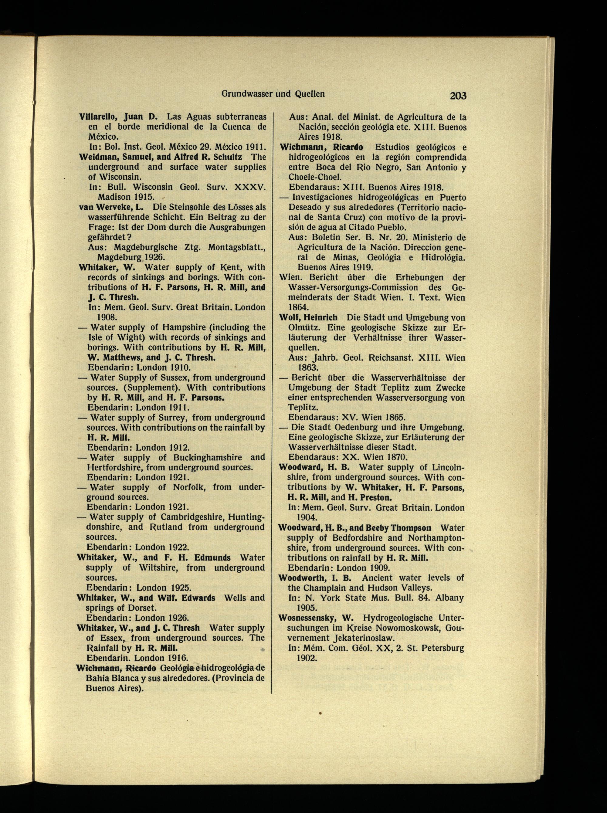 — Water Supply of Sussex, from underground sources. (Supplement). With contributions by H. R. Mill, and H. F. Parsons. Ebendann: London 1911.