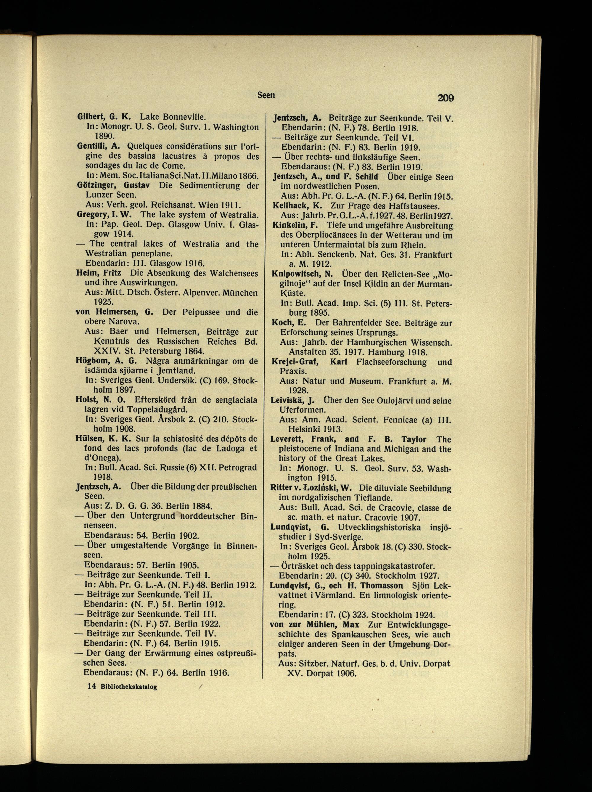 Jentzsch, A. Beiträge zur Seenkunde. Teil V. Ebendann: (N. F.) 78. Berlin 1918.