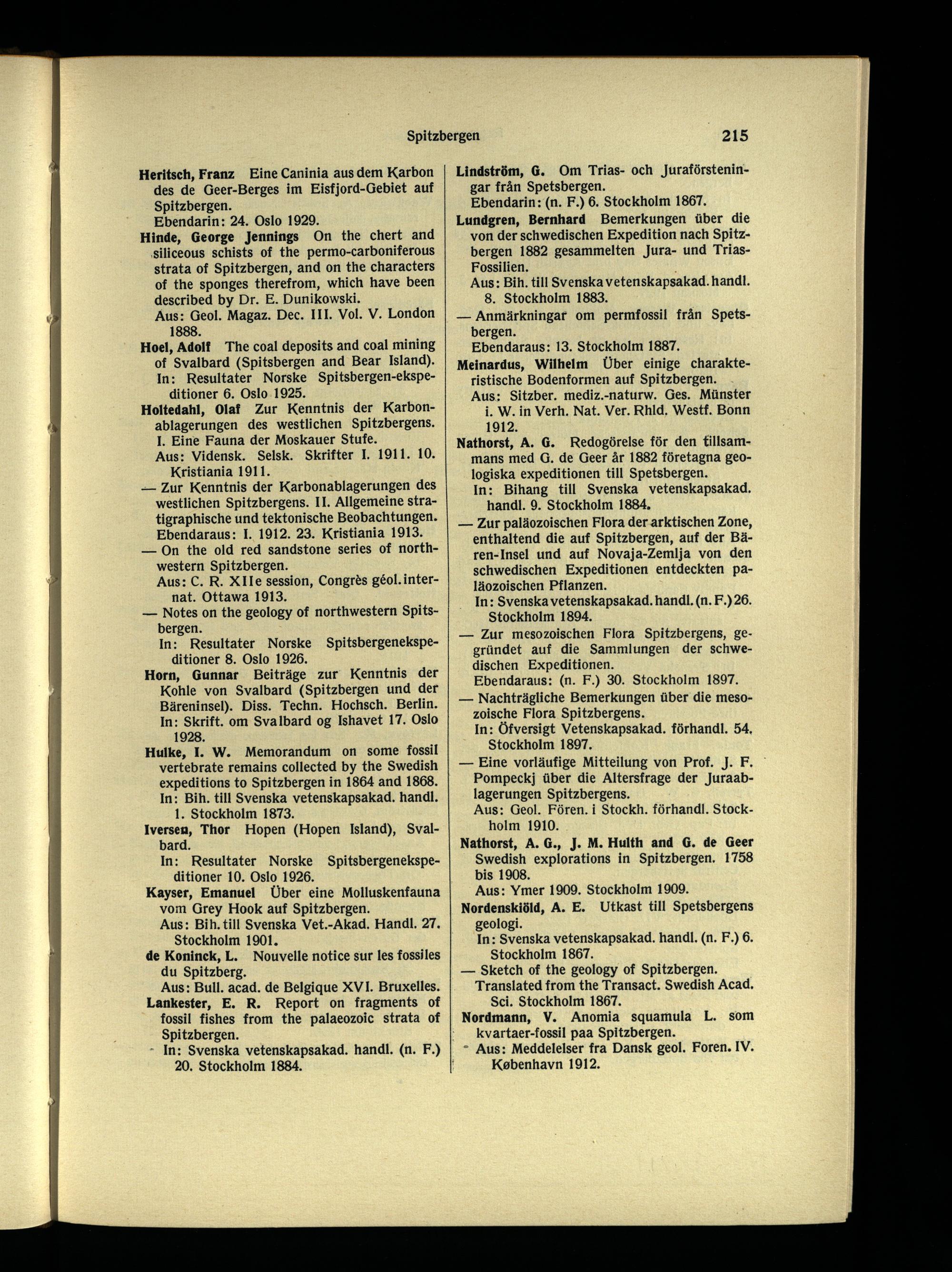 — Zur Kenntnis der Karbonablagerungen des westlichen Spitzbergens. II. Allgemeine stratigraphische und tektonische Beobachtungen. Ebendaraus: I. 1912. 23. Kristiania 1913.