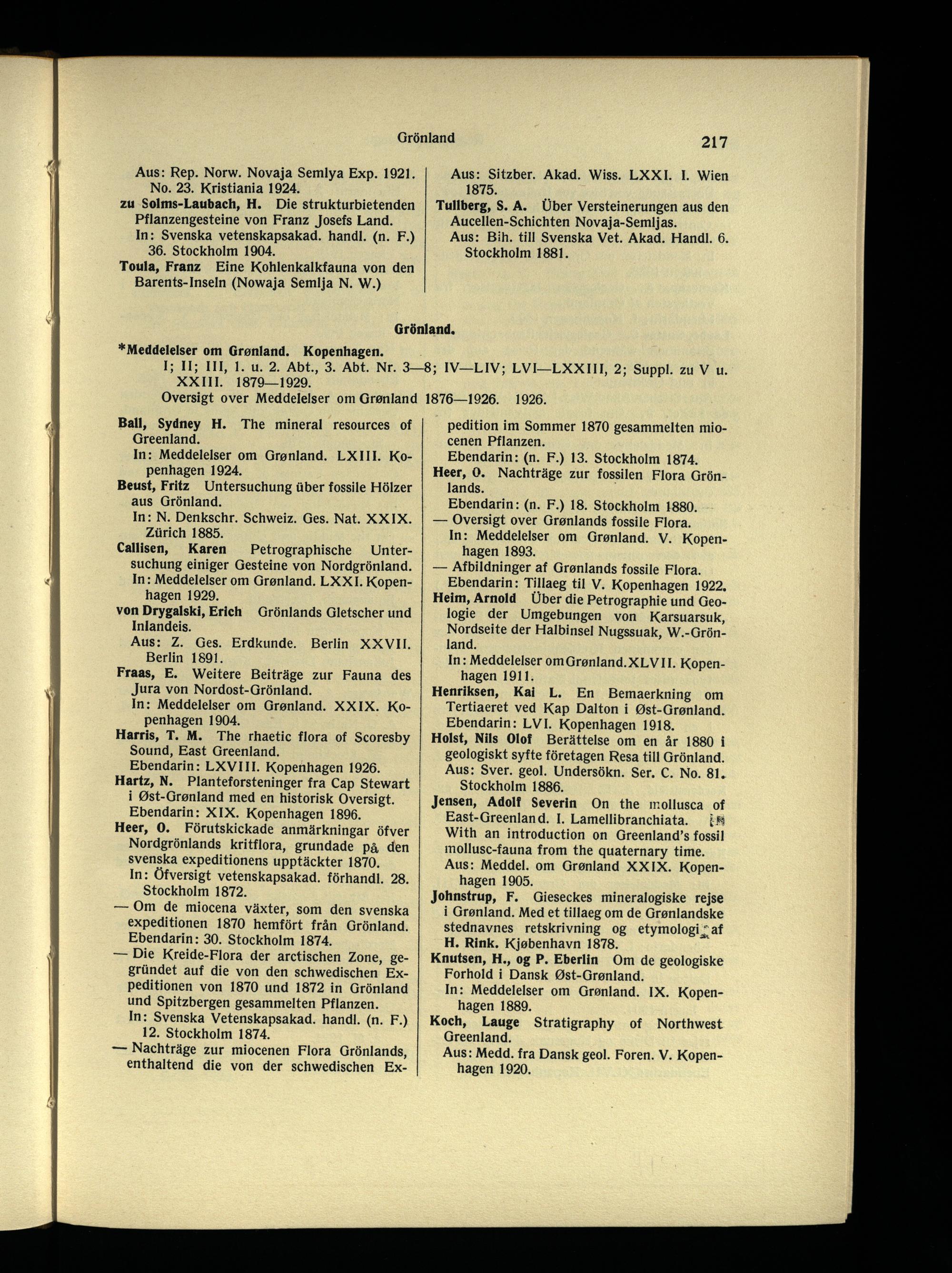 Ebendann: LXVIII. Kopenhagen 1926. Hartz, N. Planteforsteninger fra Cap Stewart i Ost-Gronland med en historisk Oversigt. Ebendann: XIX. Kopenhagen 1896.