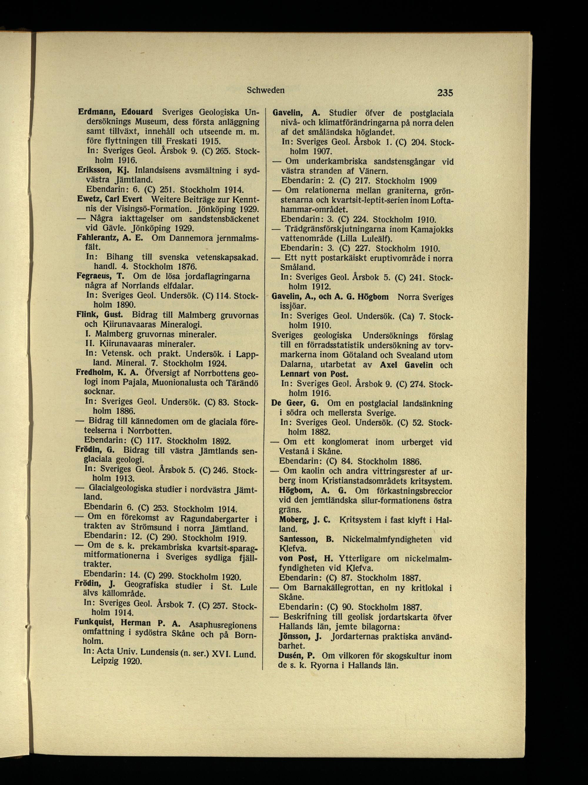 In: Sveriges Geol. Ärsbok 9. (C) 274. Stockholm 1916.