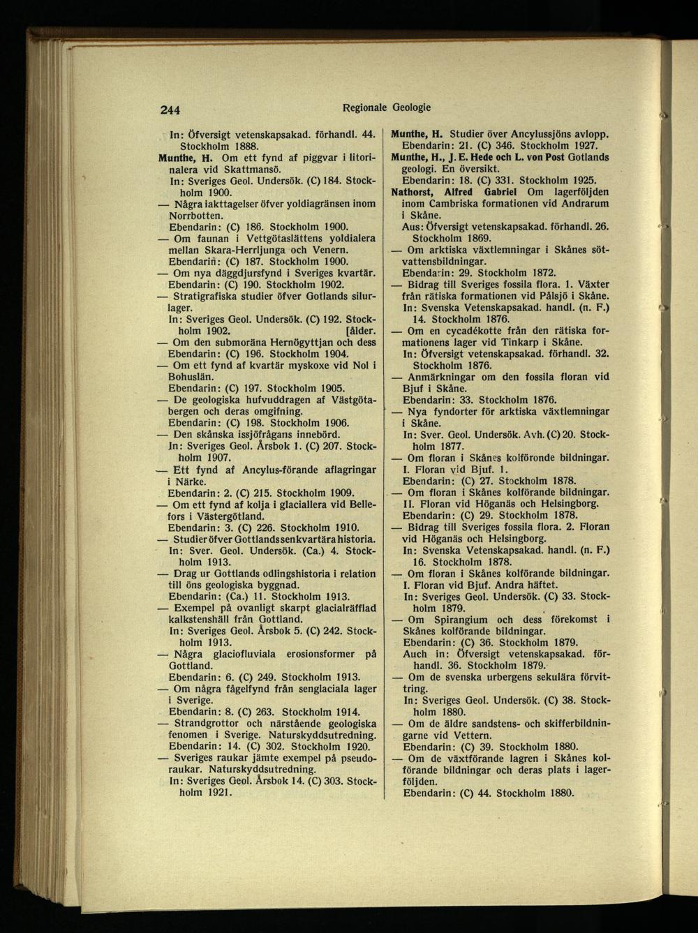 Ebendann: 21. (C) 346. Stockholm 1927. Munthe, H., J. E. Hede och L. von Post Gotlands geologi. En översikt.