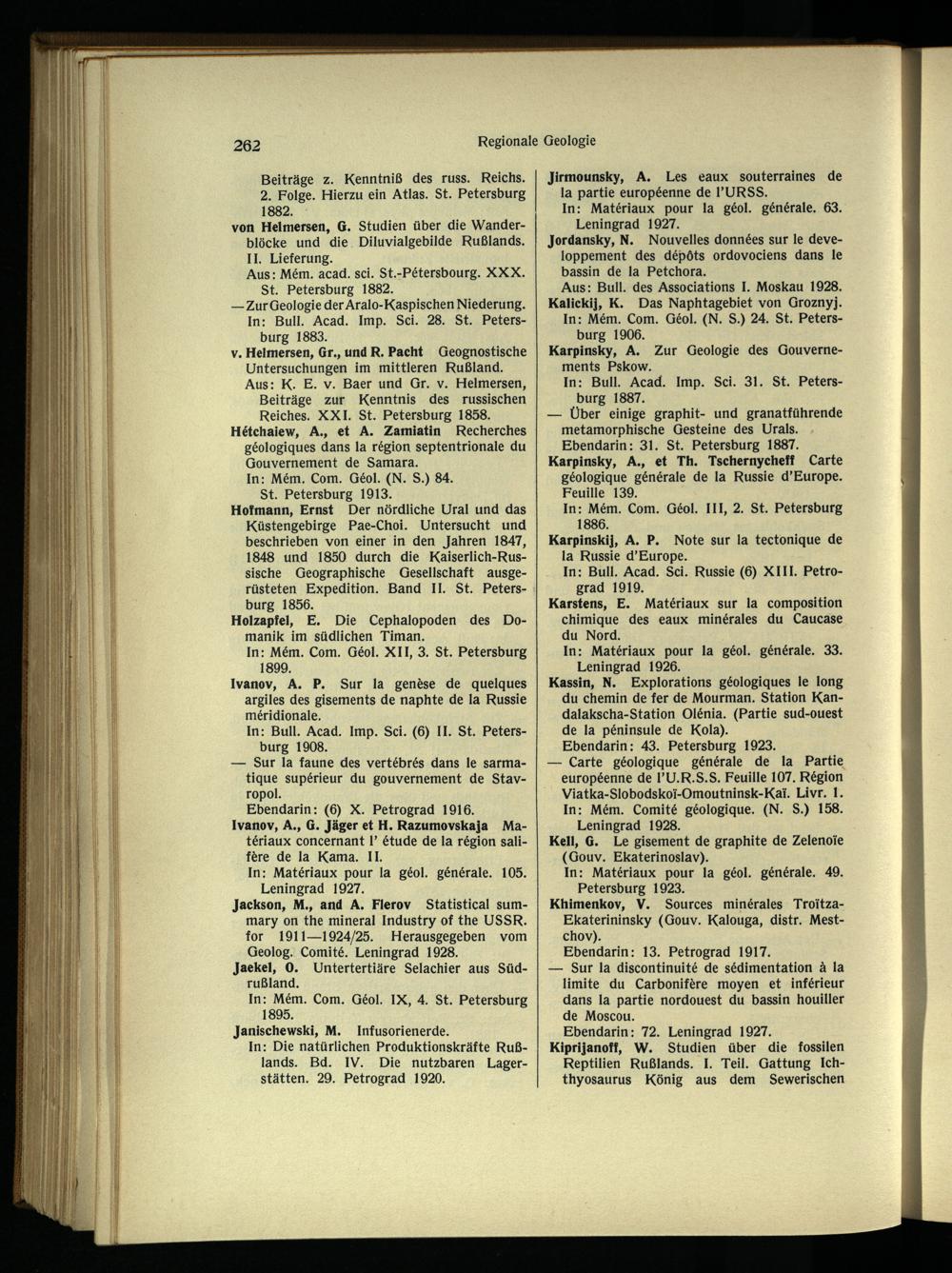 V. Helmersen, Gr., und R. Pacht Geognostische Untersuchungen im mittleren Rußland. Aus : K- E. V. Baer und Gr. v. Helmersen, Beiträge zur Kenntnis des russischen Reiches. XXI. St. Petersburg 1858. Hétchaiew, A., et A. Zamiatin Recherches géologiques dans la région septentrionale du Gouvernement de Samara.