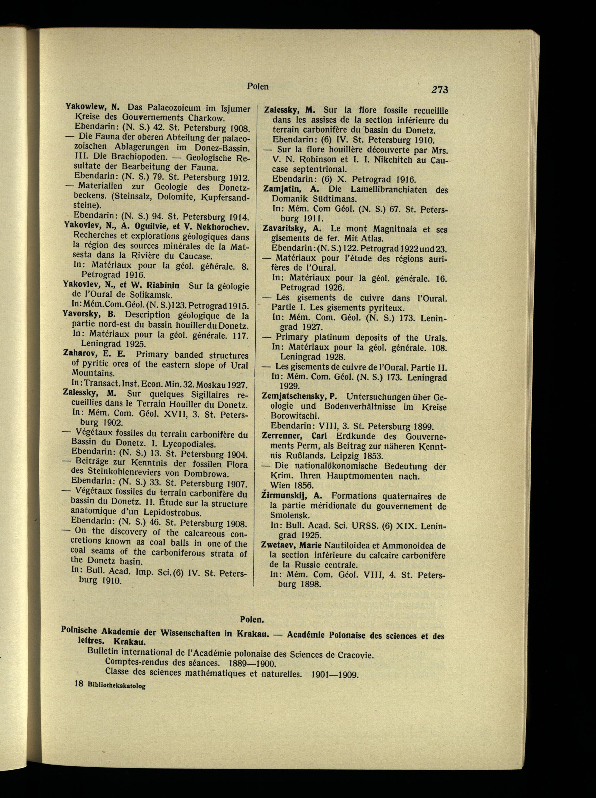 In: Mém.Com. Géoi. (N. S.)123. Petrograd 1915. Yavorsky, B. Description géologique de la partie nord-est du bassin houiller du Donetz . In: Matériaux pour la géoi. générale. 117. Leningrad 1925.