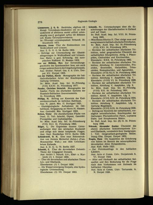 Schrenk, Alexander Gustav Übersicht des oberen silurischen Schichtensystems Liv- und Ehstlands, vornämlich ihrer Inselgruppe. 1. Teil: Geognostisch-geologische Skizze. Inaug.-Diss. Dorpat . Dorpat 1852.