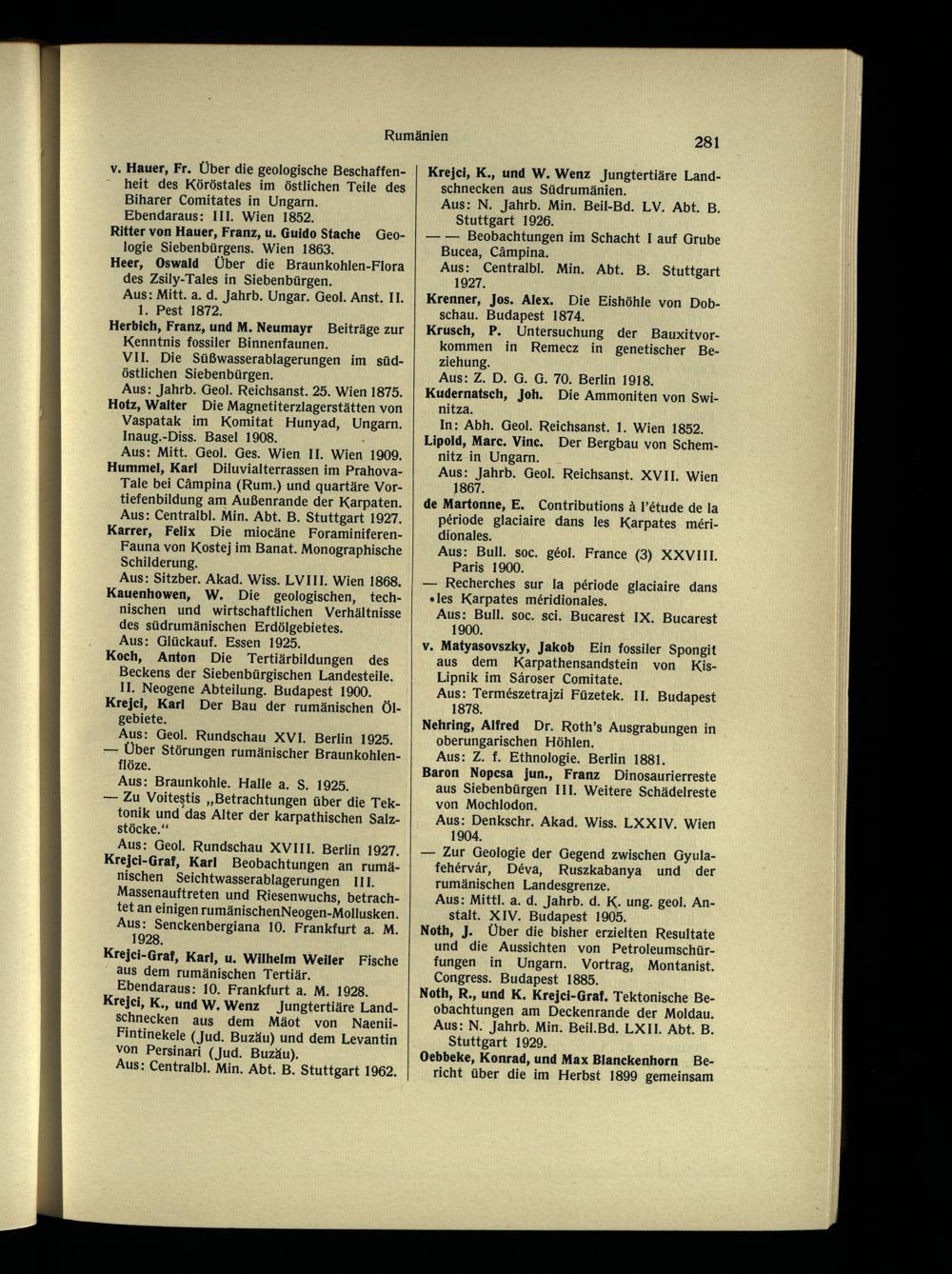 Aus: Mitt. Geol. Ges. Wien II. Wien 1909. Hummel, Karl Diluvialterrassen im Prahova - Tale bei Cämpina (Rum.) und quartäre Vor­tiefenbildung am Außenrande der Karpaten. Aus: Centralbl. Min. Abt. B. Stuttgart 1927. Karrer, Felix Die miocäne Foraminiferen- Fauna von Kostej im Banat . Monographische Schilderung.