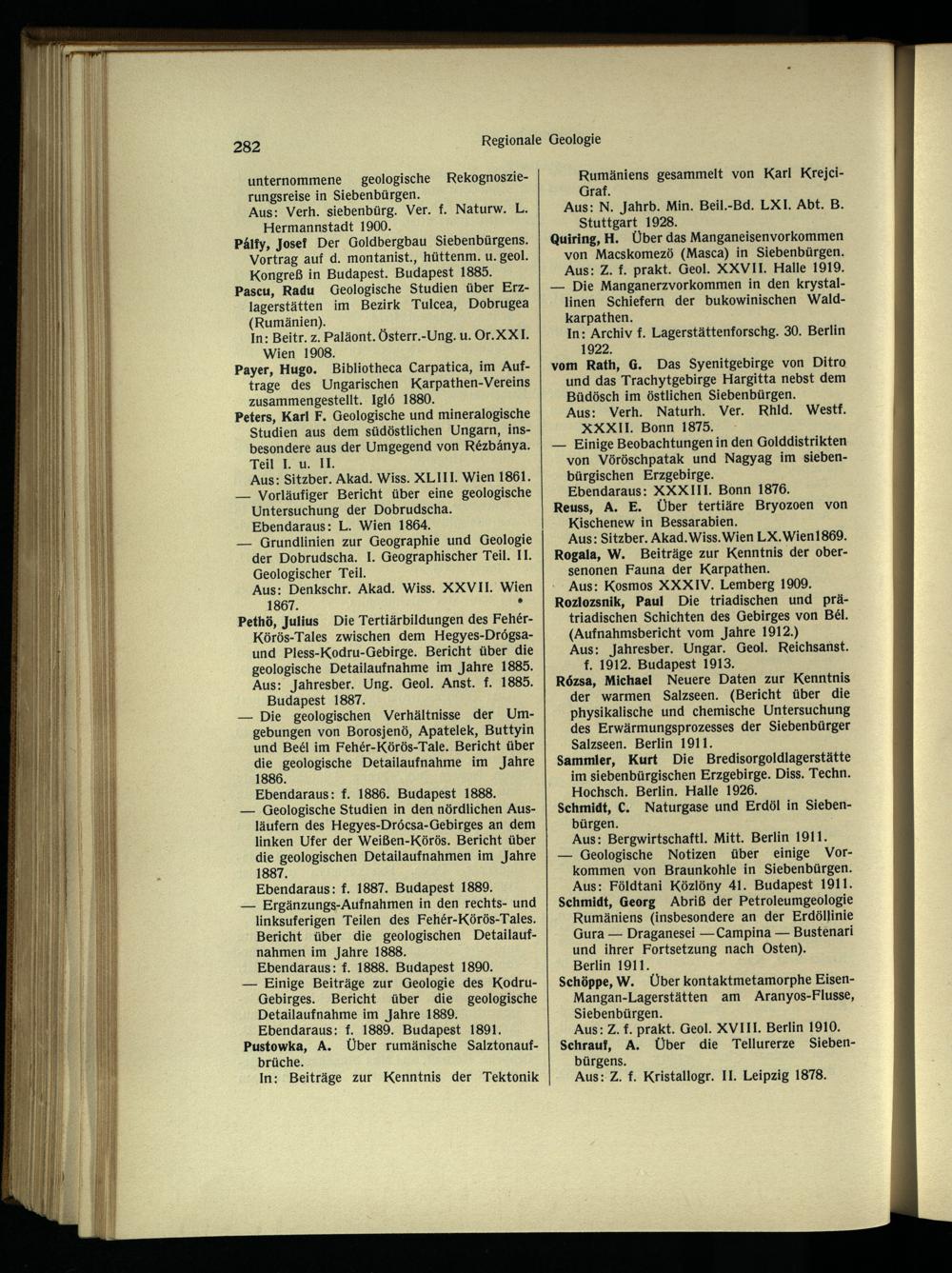 Pálfy, Josef Der Goldbergbau Siebenbürgens . Vortrag auf d. montanist., hüttenm. u. geol. Kongreß in Budapest . Budapest 1885. Pascu, Radu Geologische Studien über Erzlagerstätten im Bezirk Tulcea , Dobrugea (Rumänien ).