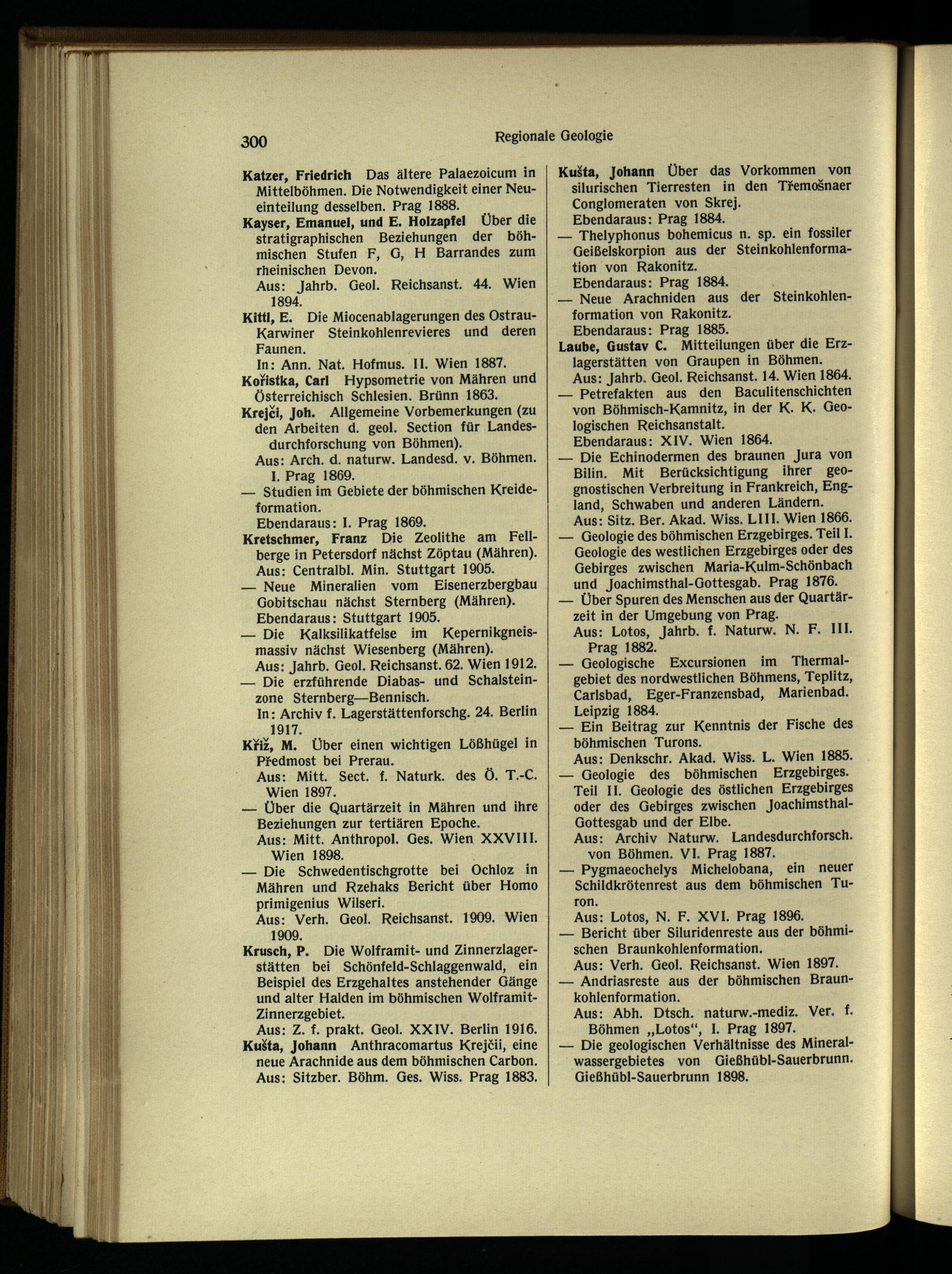 Aus: Z. f. prakt. Geol. XXIV. Berlin 1916. KuSta, Johann Anthracomartus Krejcii, eine neue Arachnide aus dem böhmischen Carbon. Aus: Sitzber. Böhm. Ges. Wiss. Prag 1883.