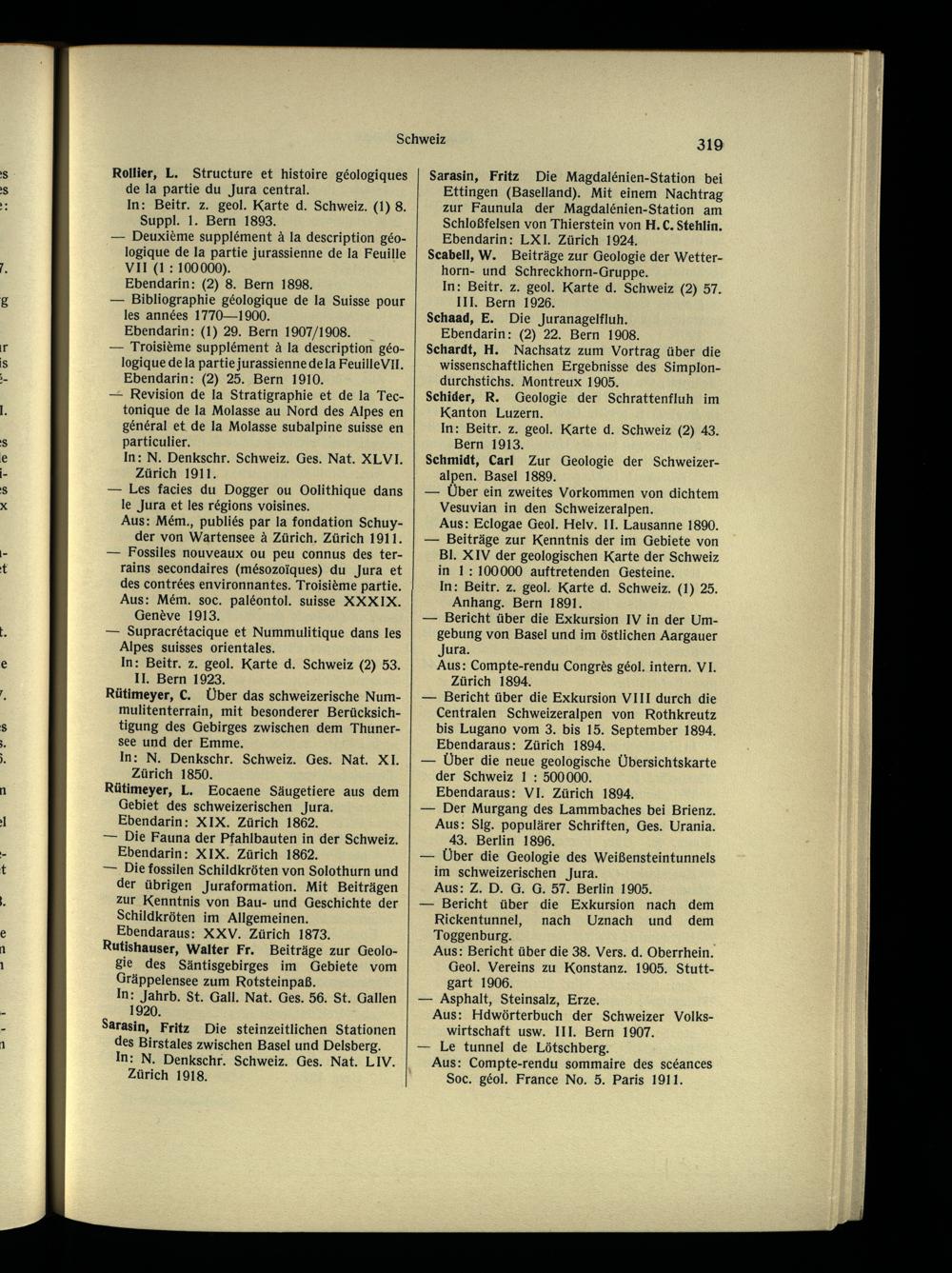 — Bibliographie géologique de la Suisse pour les années 1770—1900.