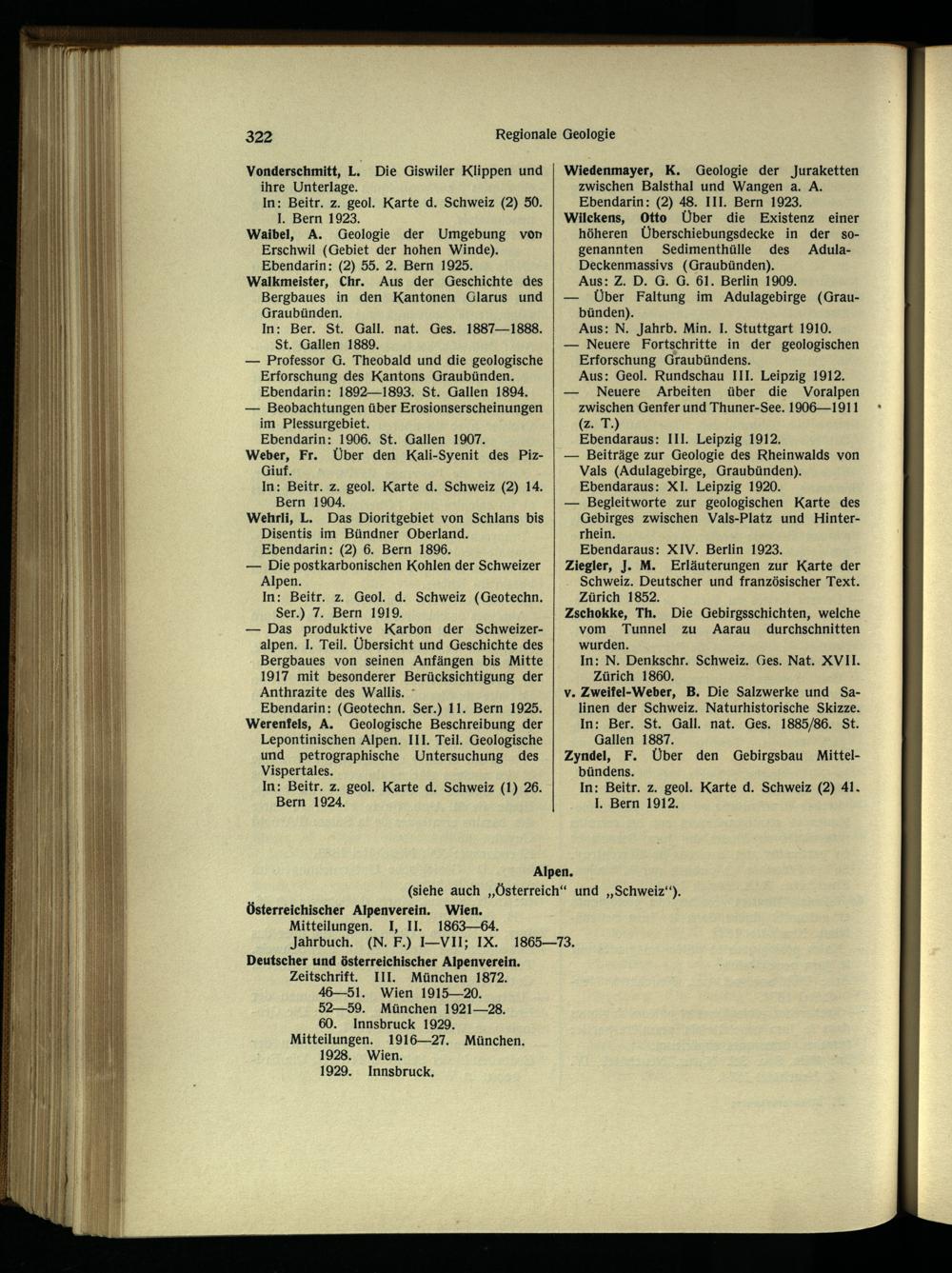 Wiedenmayer, K. Geologie der Juraketten zwischen Balsthal und Wangen a. A. Ebendann: (2) 48. III. Bern 1923. Wilckens, Otto Über die Existenz einer höheren Überschiebungsdecke in der sogenannten Sedimenthülle des Adula- Deckenmassivs (Graubünden ).