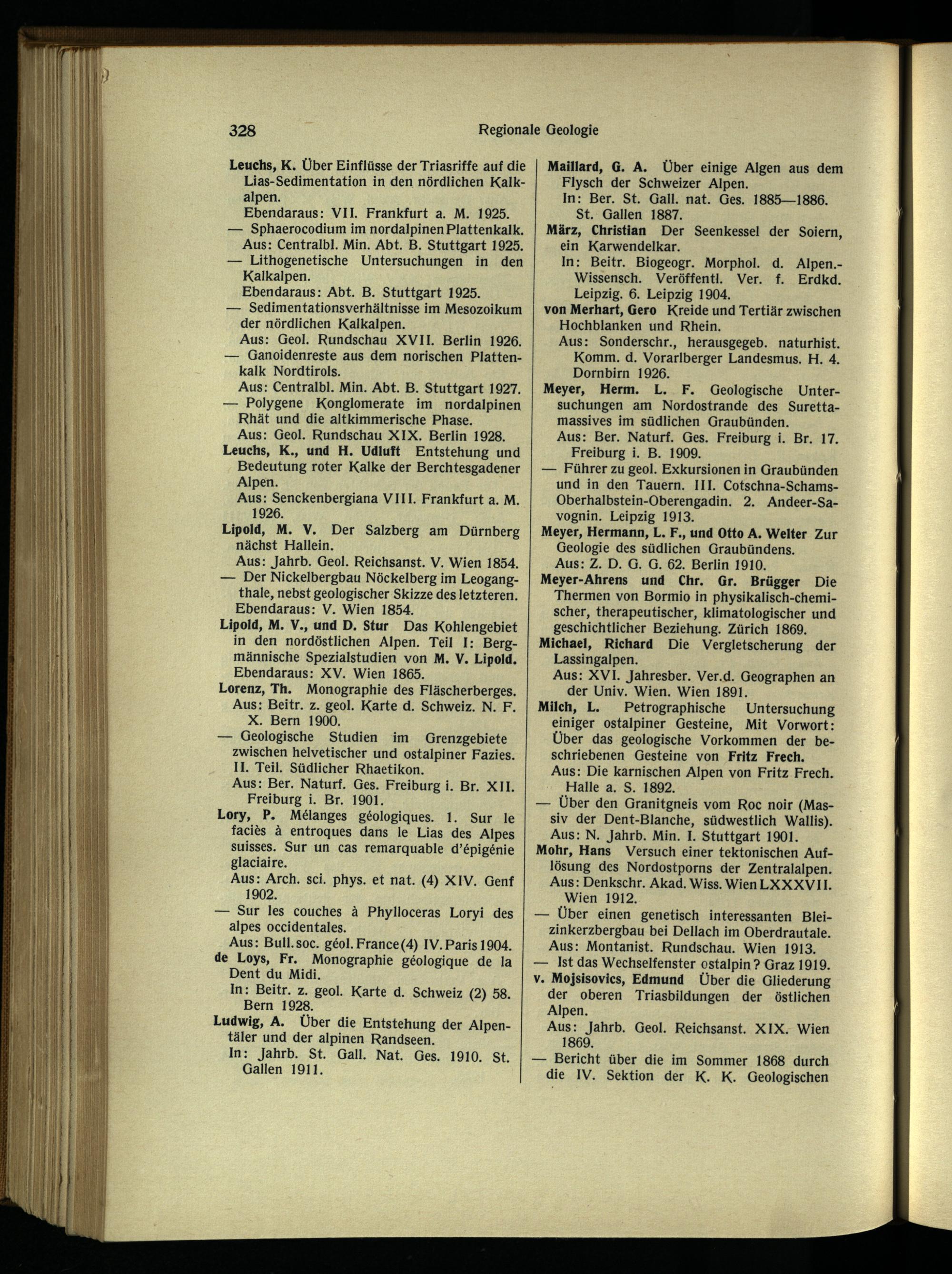 Meyer, Hermann, L. F., und Otto A. Weiter Zur Geologie des südlichen Graubündens .