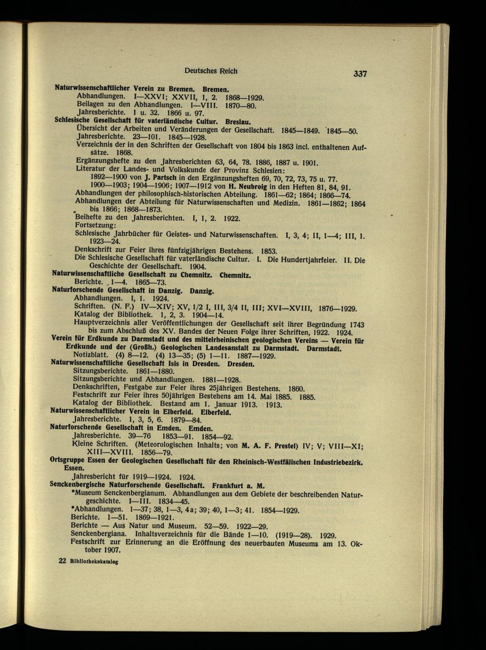 Hauptverzeichnis aller Veröffentlichungen der Gesellschaft seit ihrer Begründung 1743 bis zum Abschluß des XV. Bandes der Neuen Folge ihrer Schriften, 1922. 1924. Verein für Erdkunde zu Darmstadt und des mittelrheinischen geologischen Vereins — Verein für Erdkunde und der (Großh.) Geologischen Landesanstalt zu Darmstadt . Darmstadt . Notizblatt. (4) 8—12. (4) 13—35; (5) 1—11. 1887—1929.