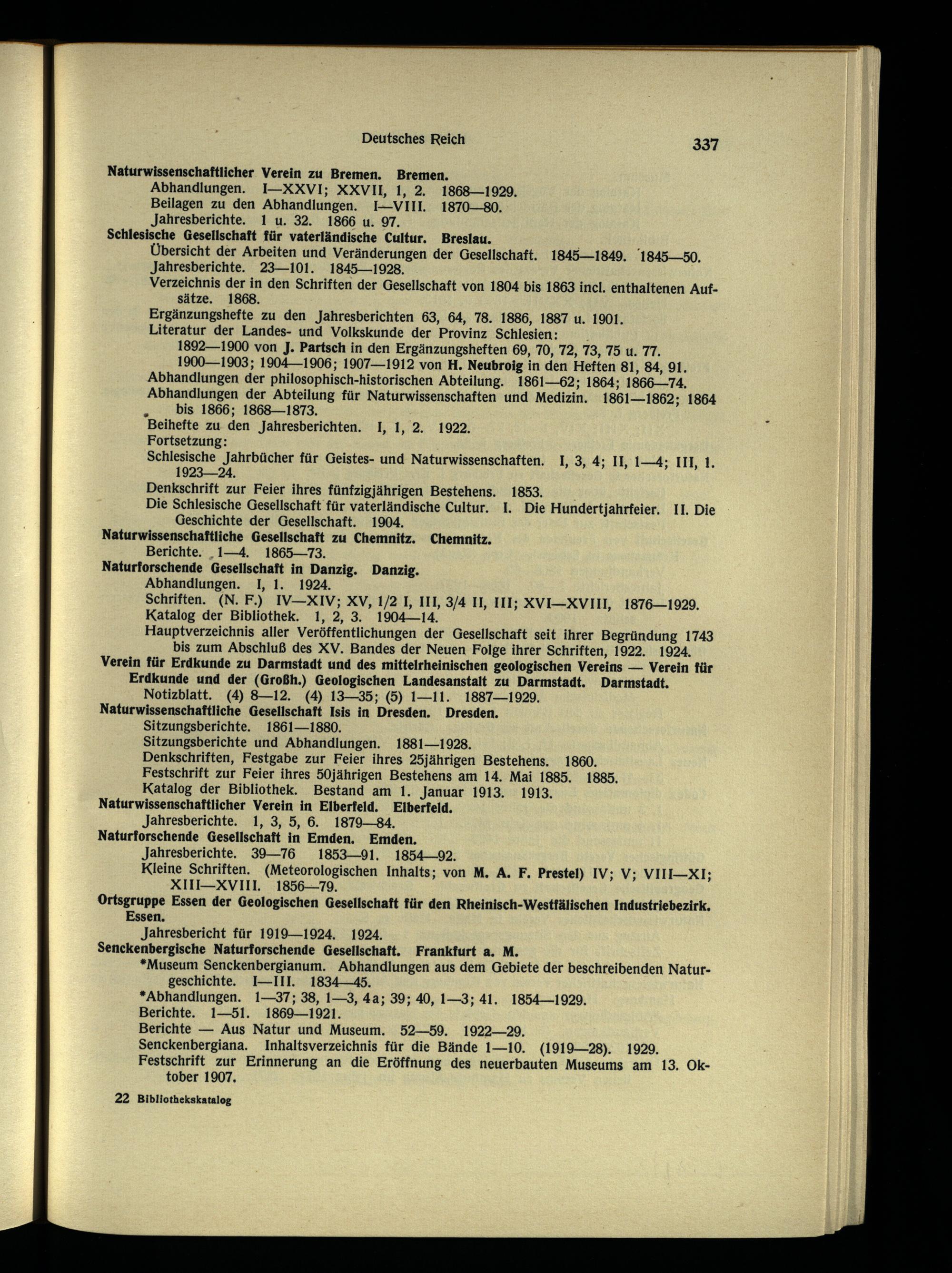 Schriften. (N. F.) IV—XIV; XV, 1/2 I, III, 3/4 II, III; XVI—XVIII, 1876—1929. Katalog der Bibliothek. 1, 2, 3. 1904—14.