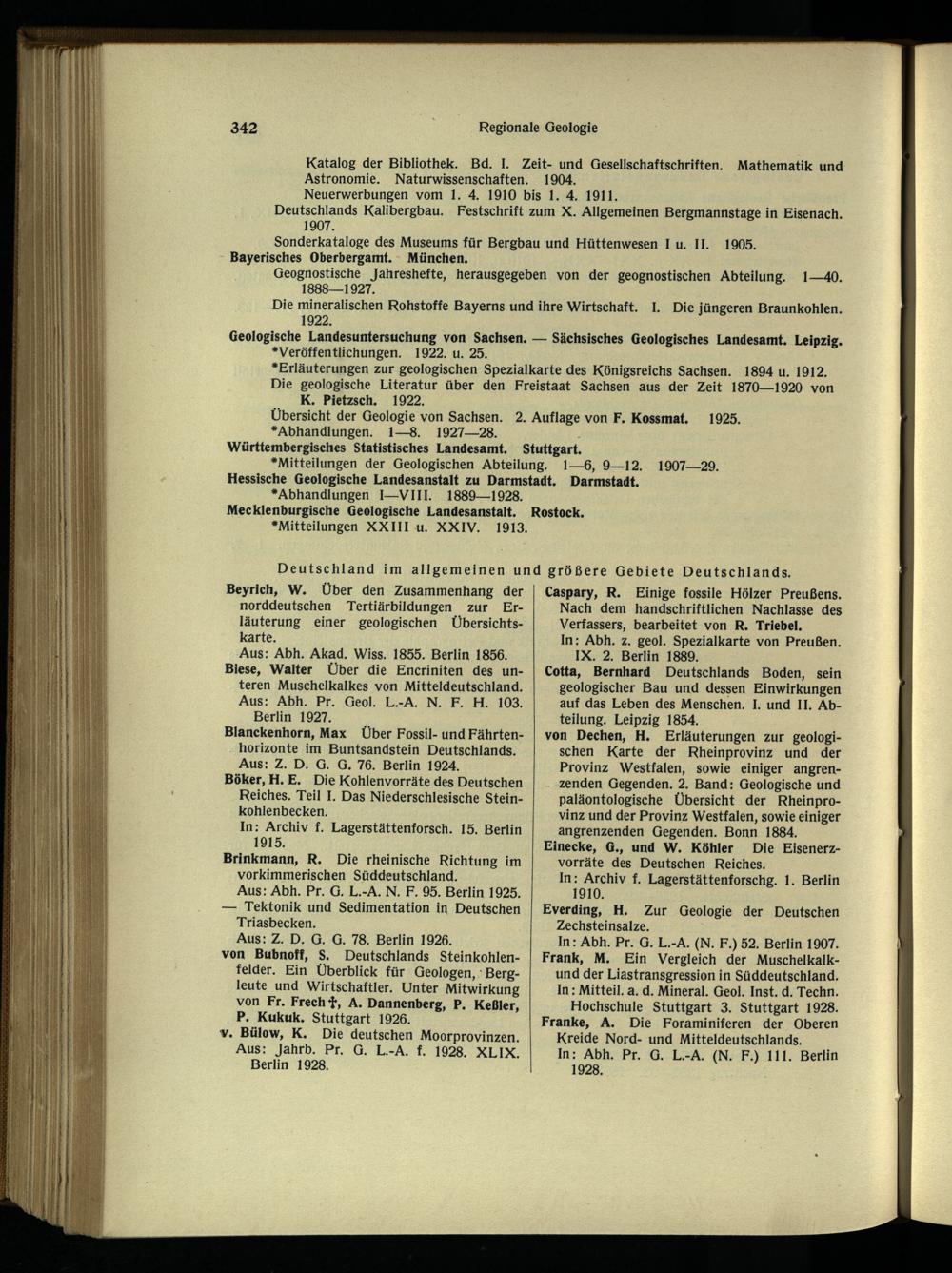In: Abh. Pr. G. L.-A. (N. F.) 52. Berlin 1907. Frank, M. Ein Vergleich der Muschelkalk- und der Liastransgression in Süddeutschland . In : Mitteil. a. d. Mineral. Geol. Inst. d. Techn. Hochschule Stuttgart 3. Stuttgart 1928. Franke, A. Die Foraminiferen der Oberen Kreide Nord- und Mitteldeutschlands .