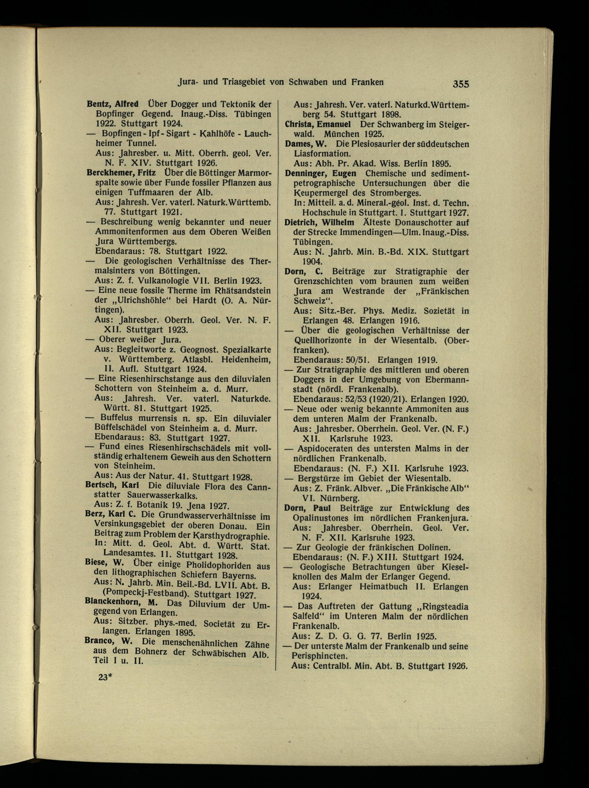 Biese, W. Über einige Pholidophoriden aus den lithographischen Schiefern Bayerns . Aus: N. Jahrb. Min. Beil.-Bd. LVII. Abt. B. (Pompeckj-Festband). Stuttgart 1927. Blanckenhorn, M. Das Diluvium der Umgegend von Erlangen .