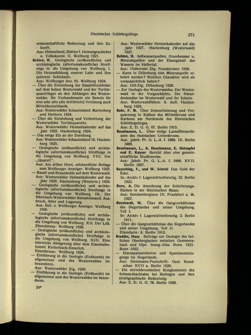Breddln, Hans Beiträge zur Geologie des östlichen Oberbergischen zwischen Gummers bach und Olpe . Inaug.-Diss. Bonn . 1921. Bonn 1922.