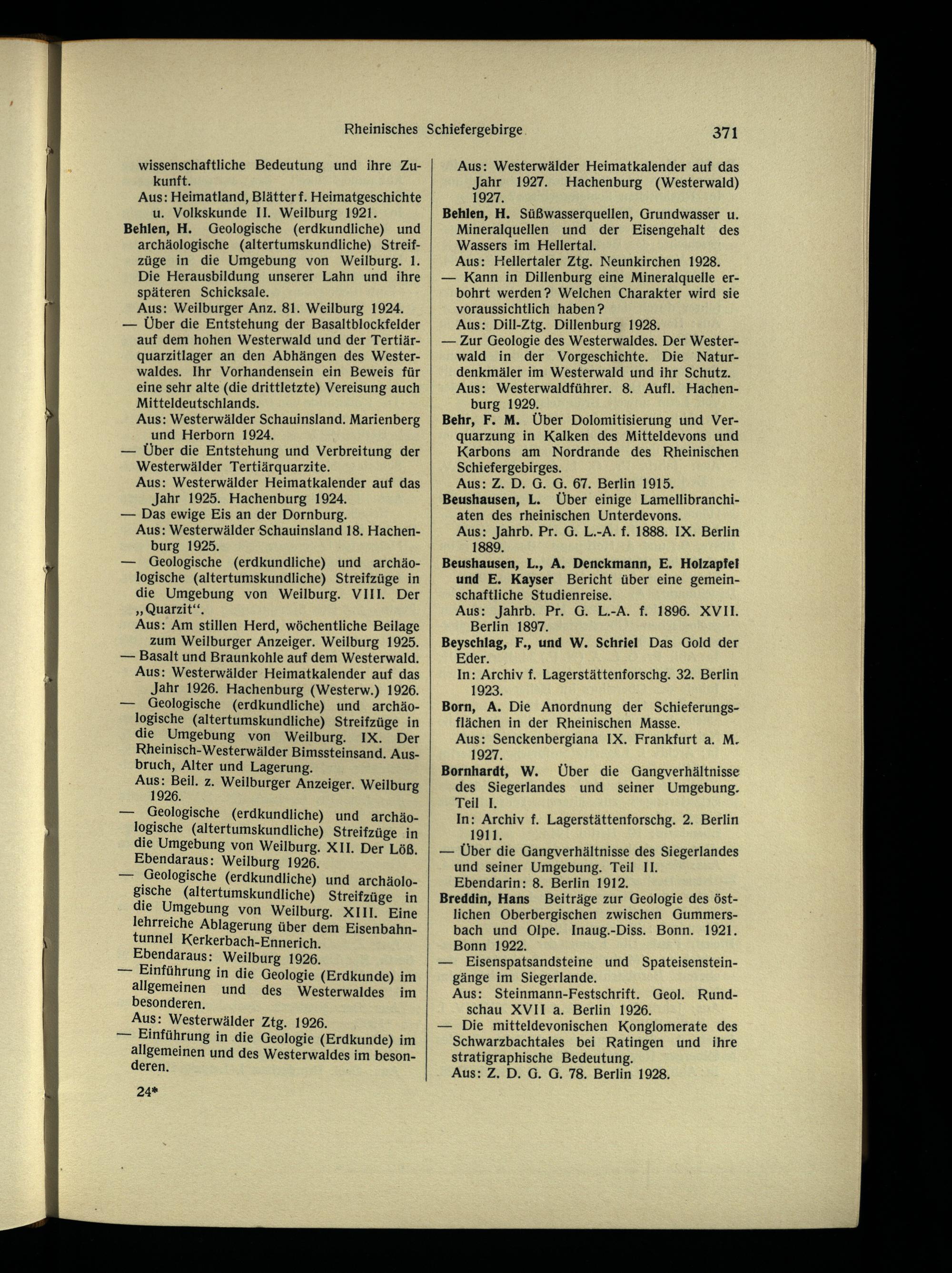 — Zur Geologie des Westerwaldes. Der Wester wald in der Vorgeschichte. Die Naturdenkmäler im Westerwald und ihr Schutz. Aus: Westerwaldführer. 8. Aufl. Hachen burg 1929.