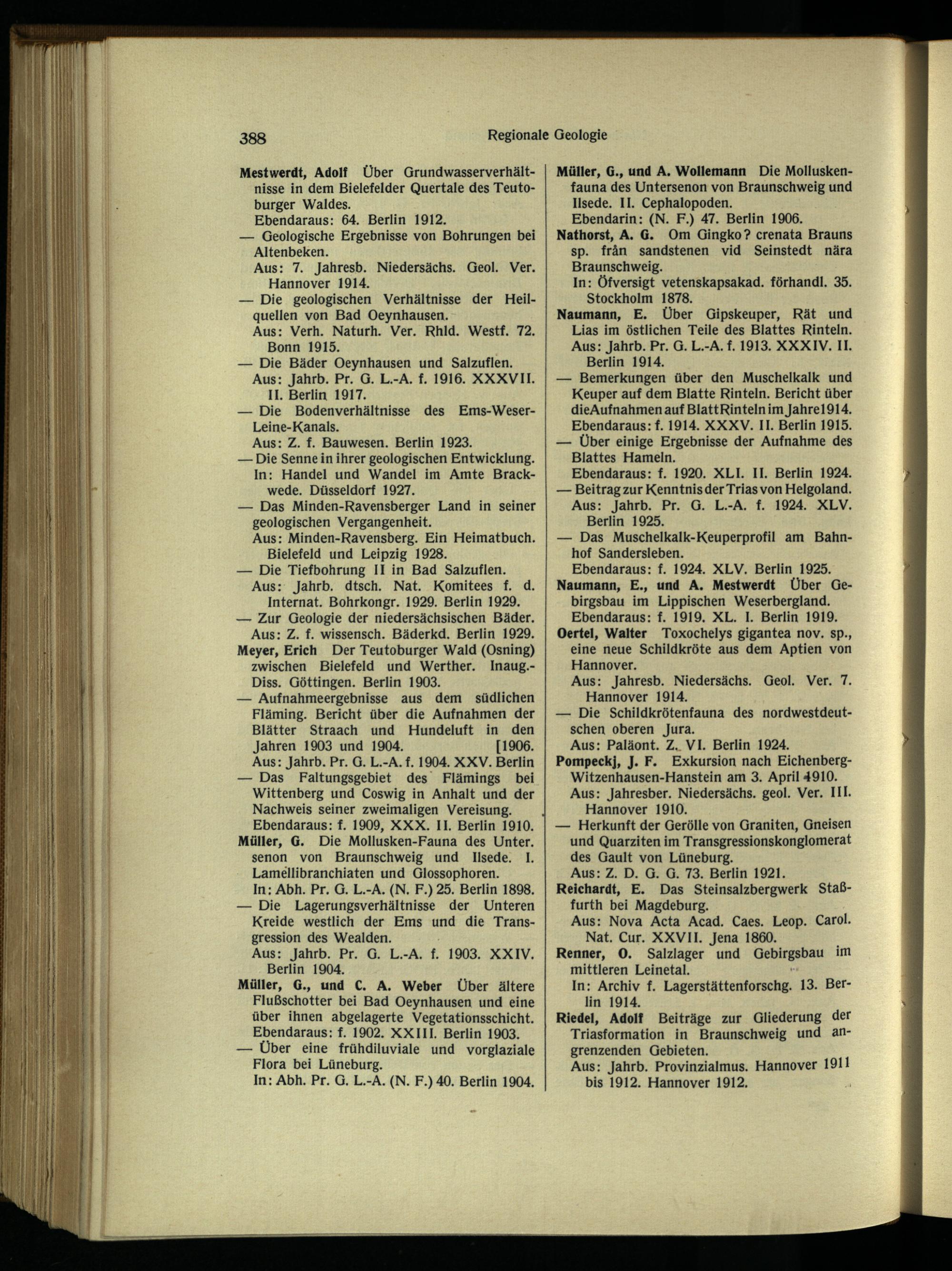 Ebendaraus: f. 1924. XLV. Berlin 1925. Naumann, E., und A. Mestwerdt Über Ge- birgsbau im Lippischen Weserbergland . Ebendaraus: f. 1919. XL. I. Berlin 1919. Oertel, Walter Toxochelys gigantea nov. sp., eine neue Schildkröte aus dem Aptien von Hannover .