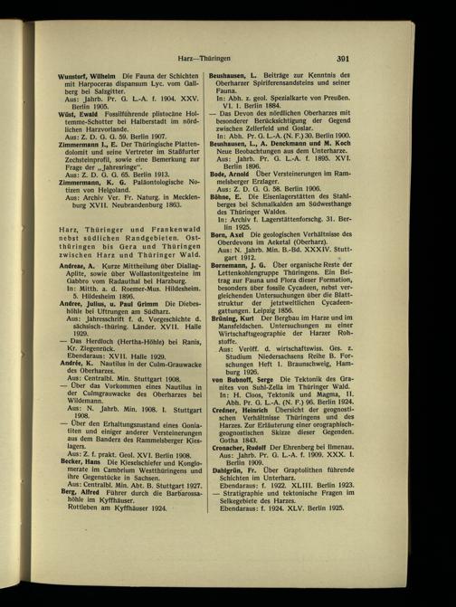 In: Abh. Pr. G. L.-A. (N. F.)30. Berlin 1900. Beushausen, L., A. Denckmann und M. Koch Neue Beobachtungen aus dem Unterharze. Aus: Jahrb. Pr. G. L.-A. f. 1895. XVI. Berlin 1896.
