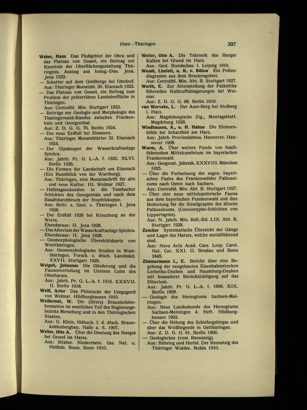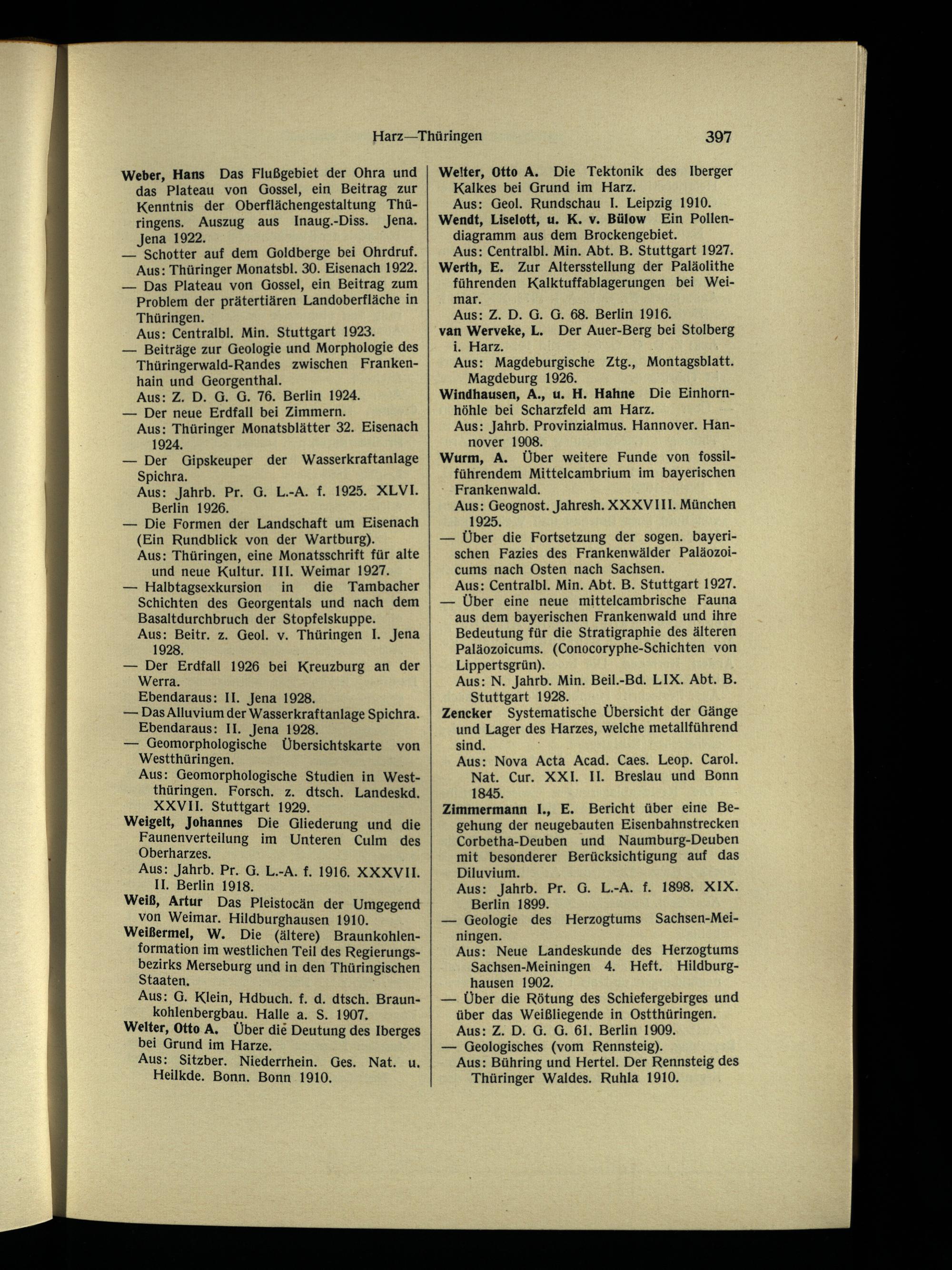 Weiß, Artur Das Pleistocän der Umgegend von Weimar . Hildburghausen 1910. Weißermel, W. Die (ältere) Braunkohlenformation im westlichen Teil des Regierungsbezirks Merseburg und in den Thüringischen Staaten.