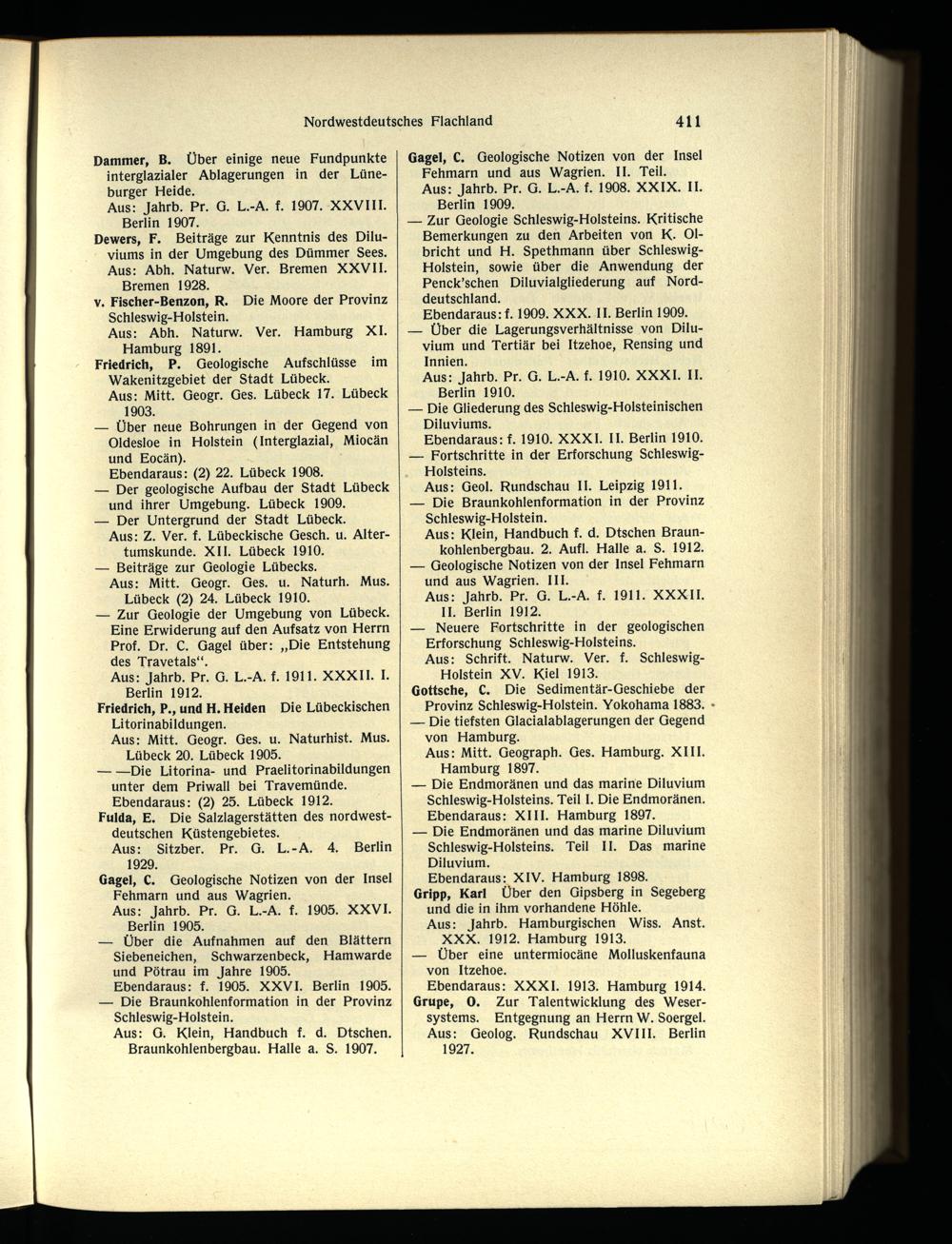— Zur Geologie Schleswig-Holsteins . Kritische Bemerkungen zu den Arbeiten von K. 01- bricht und H. Spethmann über Schleswig- Holstein , sowie über die Anwendung der Penck’schen Diluvialgliederung auf Norddeutschland.
