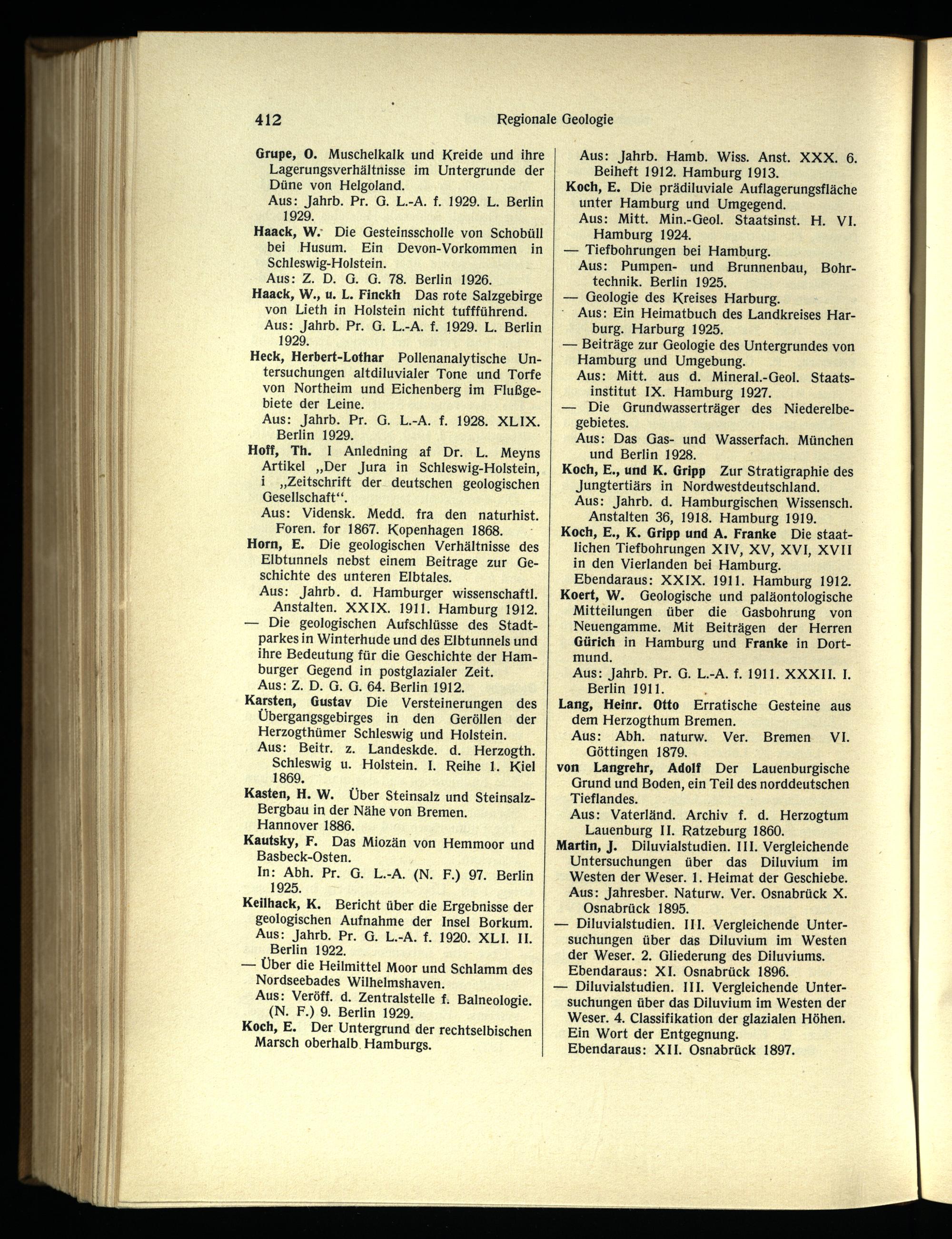 Koch, E., K. Gripp und A. Franke Die staatlichen Tiefbohrungen XIV, XV, XVI, XVII in den Vierlanden bei Hamburg . Ebendaraus: XXIX. 1911. Hamburg 1912. Koert, W. Geologische und paläontologische Mitteilungen über die Gasbohrung von Neuengamme . Mit Beiträgen der Herren Gürich in Hamburg und Franke in Dort mund .