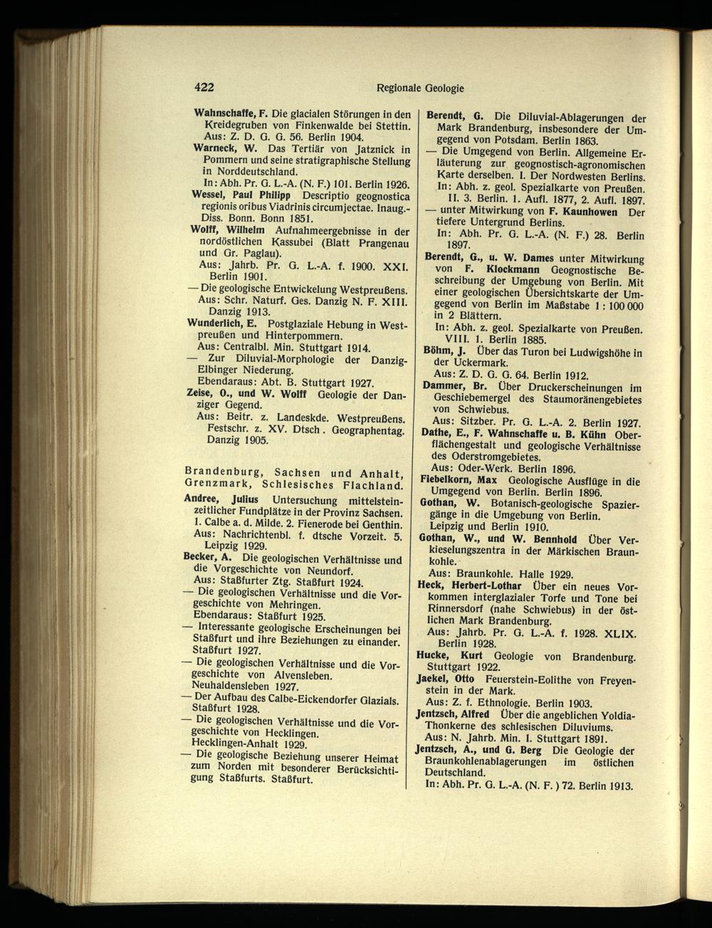 Hucke, Kurt Geologie von Brandenburg . Stuttgart 1922.