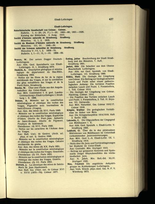 Klähn, Hans Die Geologie der Umgebung von Colmar . Ein Beitrag zur Geologie zwischen Lauch und Fecht nebst einem paläonto- logischen Anhang: Die tertiären Fossilien zwischen Lauch und Fecht. I. Foraminifera, 1. Teil. Colmar 1914.