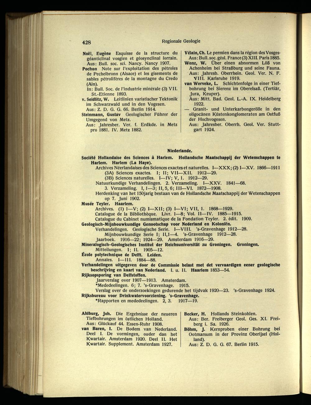 Noël, Eugène Esquisse de la structure du géanticlinal vosgien et géosynclinal lorrain. Aus: Bull. soc. sei. Nancy. Nancy 1907. Pochon Note sur l’exploitation des pétroles de Pechelbronn (Alsace) et les gisements de sables pétrolifères de la montagne du Credo (Ain).
