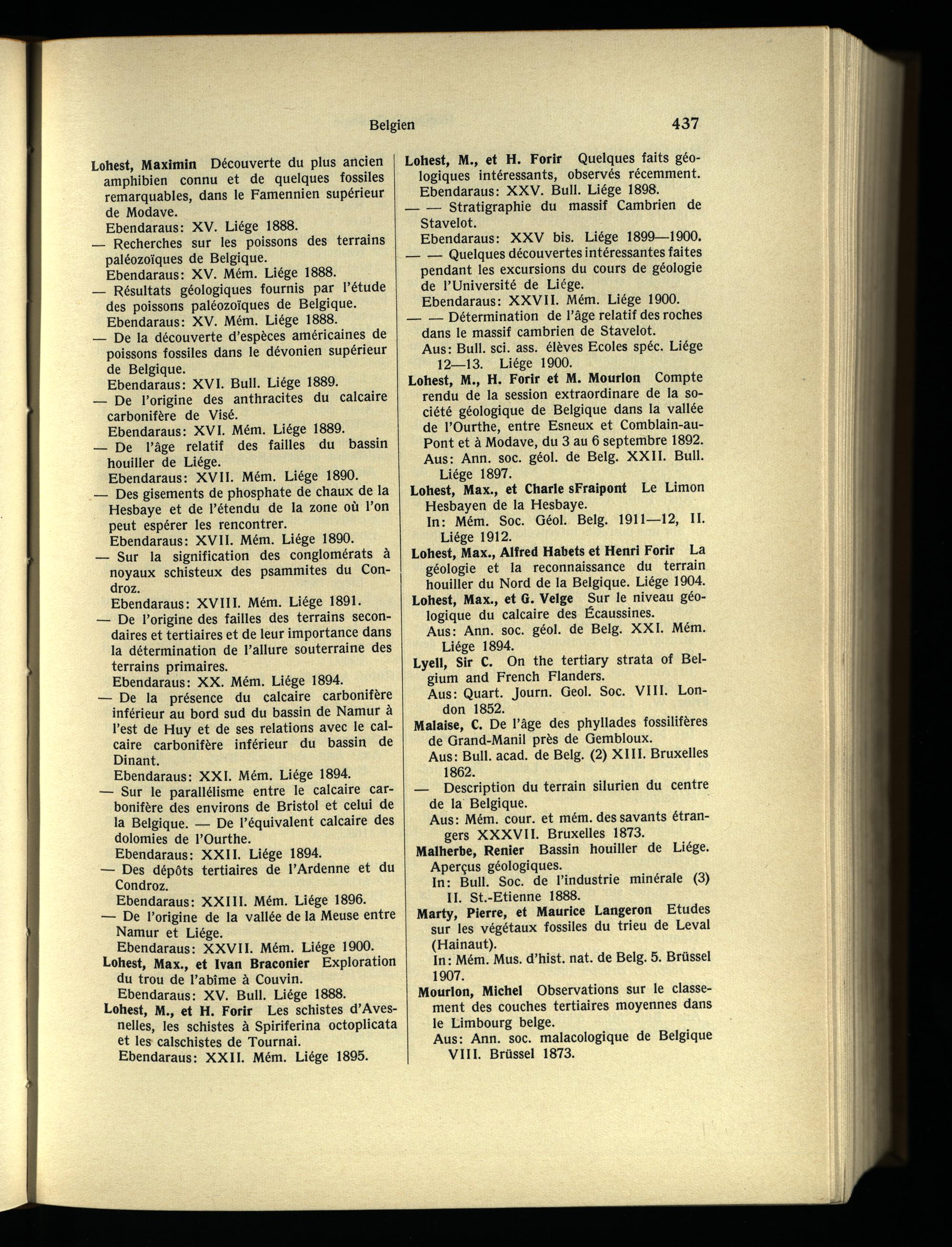 Lohest, M., et H. Forir Quelques faits géologiques intéressants, observés récemment. Ebendaraus: XXV. Bull. Liège 1898.
