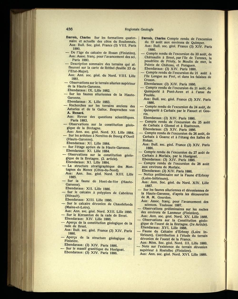 — Observations sur la constitution géologique de la Bretagne . (2. article). Ebendaraus: XI. Lille 1884.