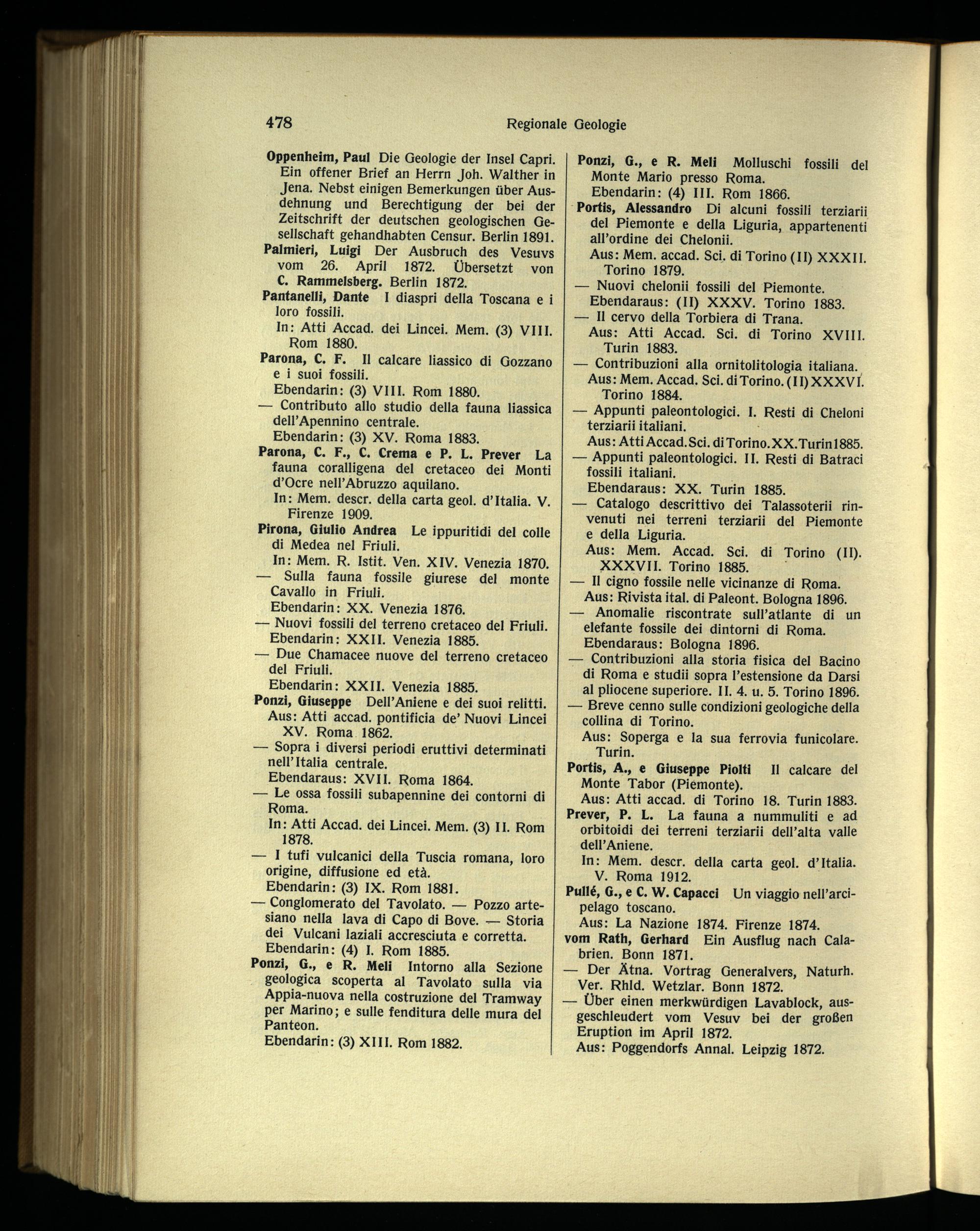 Oppenheim, Paul Die Geologie der Insel Capri. Ein offener Brief an Herrn Joh. Walther in Jena . Nebst einigen Bemerkungen über Ausdehnung und Berechtigung der bei der Zeitschrift der deutschen geologischen Gesellschaft gehandhabten Censur. Berlin 1891. Palmieri, Lulgi Der Ausbruch des Vesuvs vom 26. April 1872. Übersetzt von C. Rammeisberg. Berlin 1872.