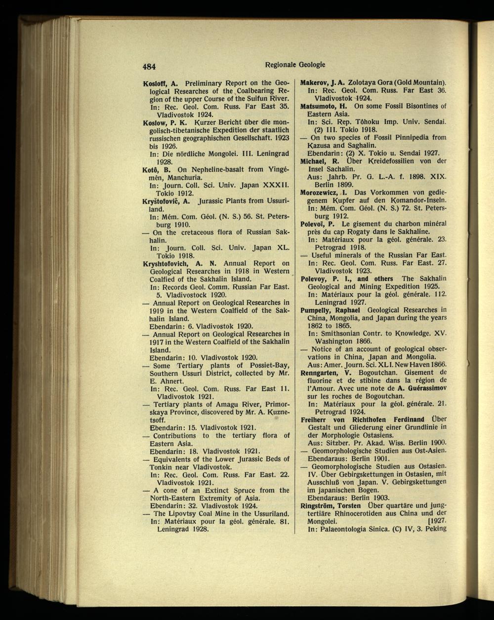 In: Records Geol. Comm. Russian Far East. 5. Vladivostock 1920.