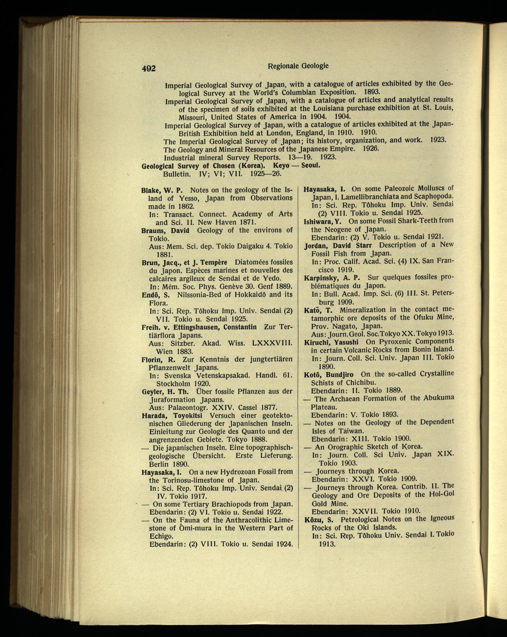 Imperial Geological Survey of Japan , with a catalogue of articles exhibited by the Geological Survey at the World’s Columbian Exposition. 1893.